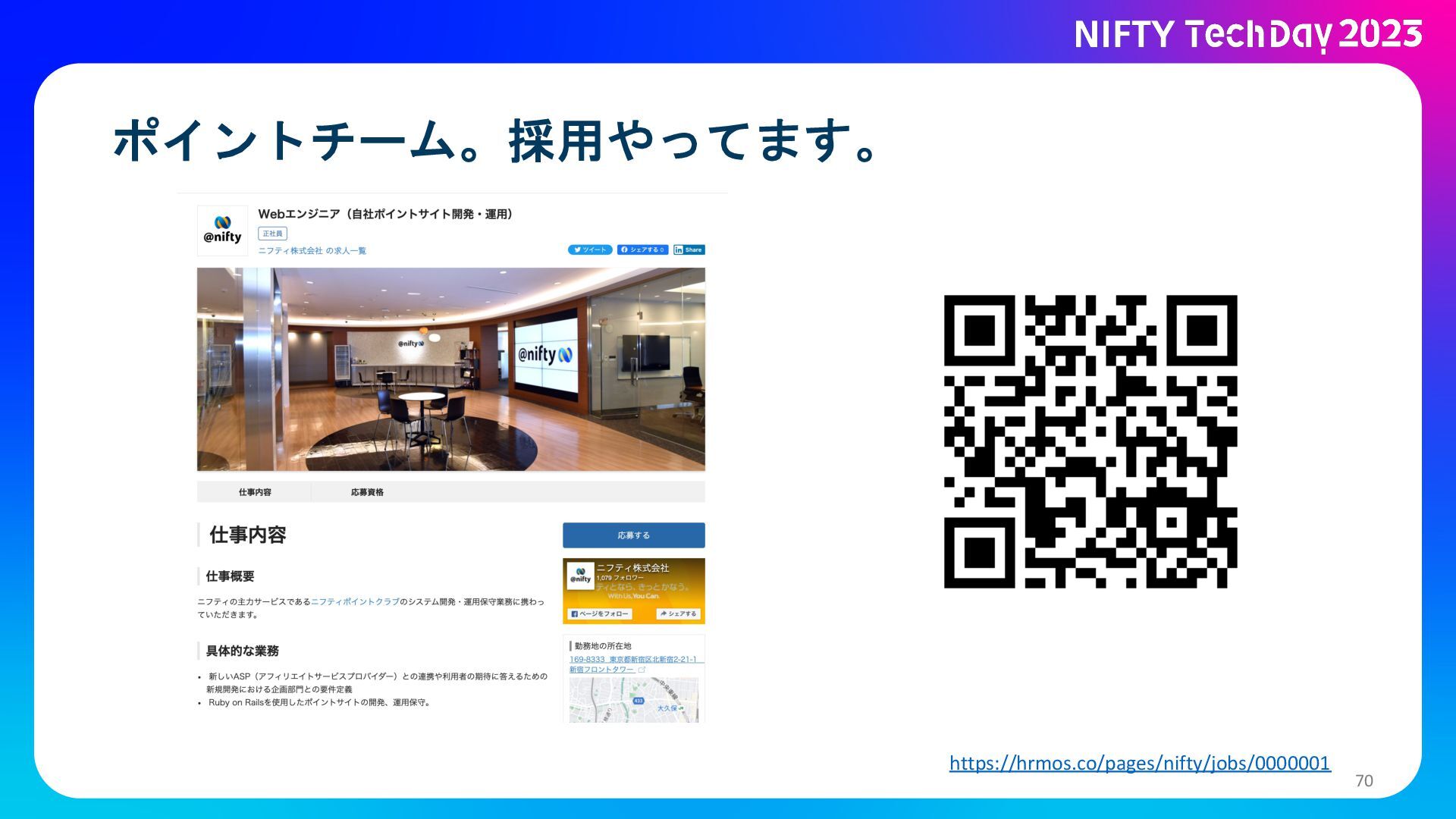 ポイントチーム。採用やってます。 70 https://hrmos.co/pages/nifty/jobs/0000001