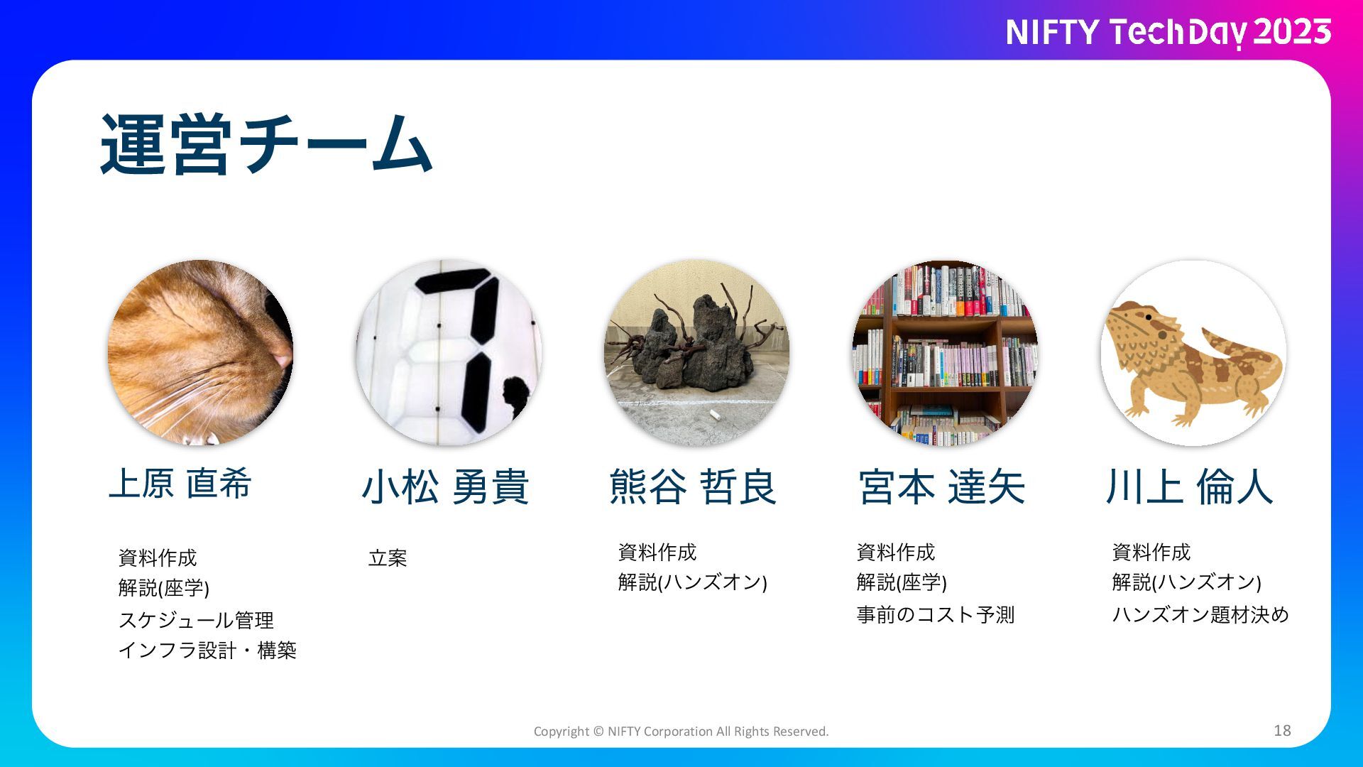 Copyright ©NIFTY Corporation All Rights Reserved. χϑςΟࣾISUCON ։࠵·ͰͷಓͷΓ ձһγεςϜάϧʔϓɹୈೋ։ൃνʔϜ ্ݪ