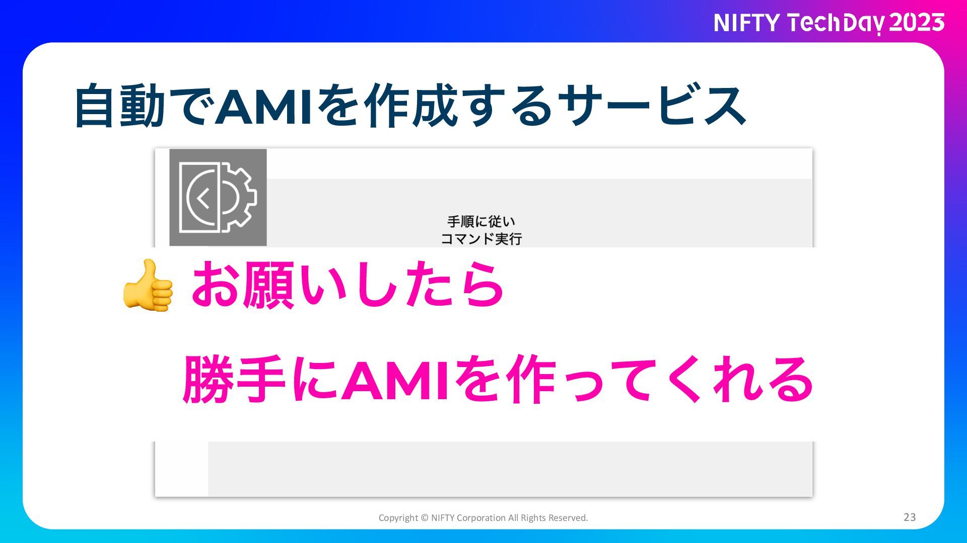 Copyright © NIFTY Corporation All Rights Reserved. ࣗಈͰAMIΛ࡞͢ΔαʔϏε 23 👍
