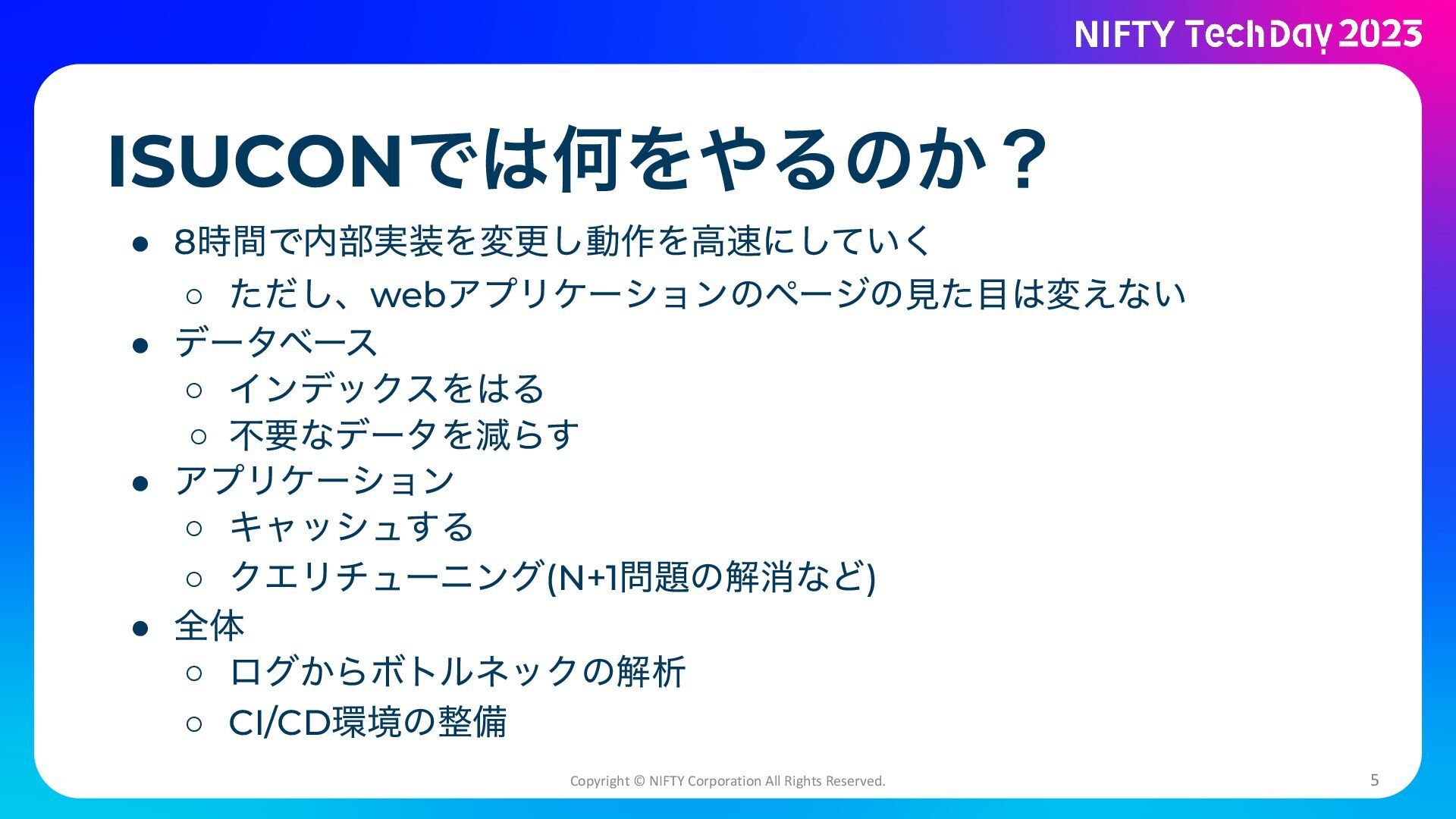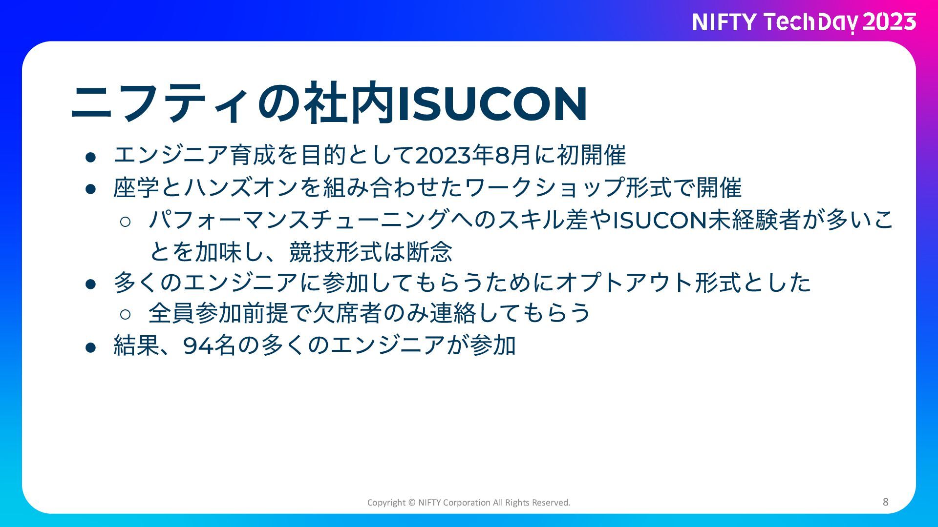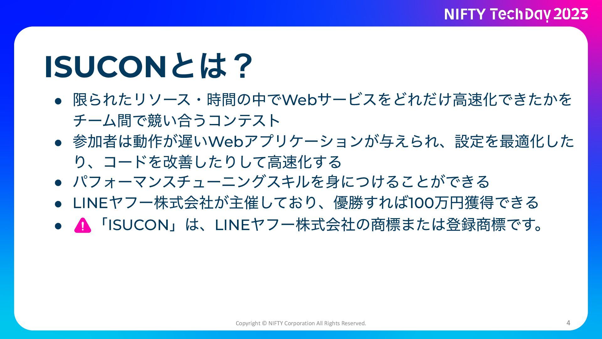 Copyright ©NIFTY Corporation All Rights Reserved. ISUCONͱʁ
