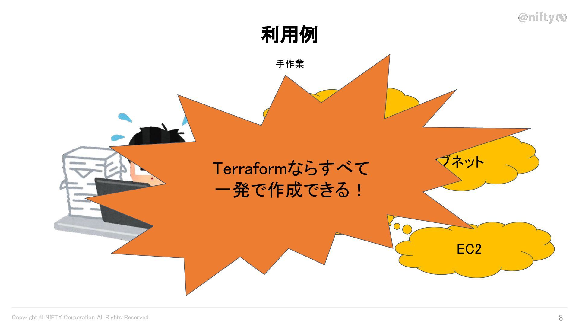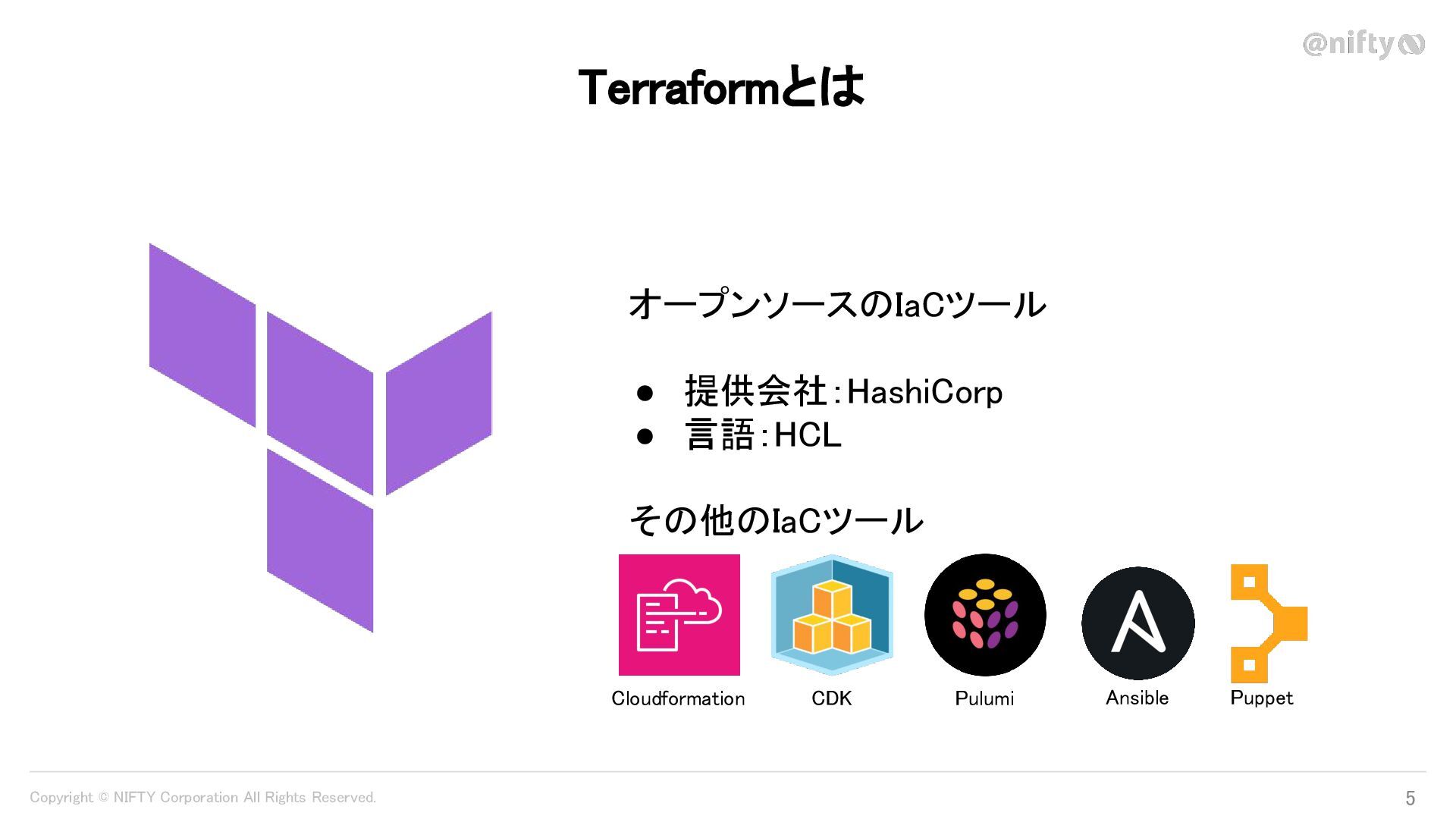 イベント これから始めるTerraform超入門! NIFTY Tech Talk #23 https://nifty.connpass.com/event/337326/