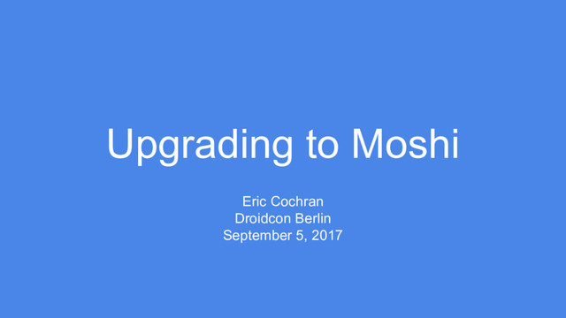 Moshi is the successor to Gson. I will briefly contrast Moshi to Gson and explain the advantages of Moshi's API and implementation. I will cover the power of the streaming API for complex use cases, like polymorphic deserialization, and how Okio's types make building off of Moshi fun and easy. Finally, we will go through how to use Moshi effectively with Retrofit and Auto-Value-Moshi and some tricks to employ when upgrading.