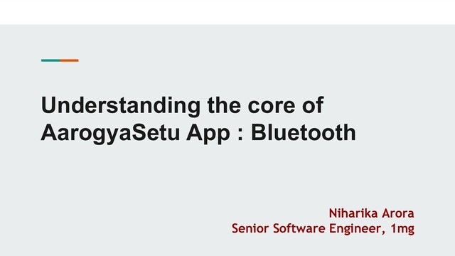 You must have heard about AarogyaSetu - India’s Contact Tracing App, with an objective of identifying hotspots and tracing individuals who have been to these areas or been in contact with someone who has been already infected. This app is built using Bluetooth Low Energy (BLE), which is a low power wireless communication technology that can be used over a short distance to enable smart devices to communicate. This PPT covers the technical implementation of BLE in the app as well as the technical challenges faced during development