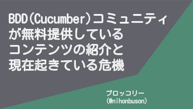 BDD(Cucumber)コミュニティ が無料提供している コンテンツの紹介と 現在起きている危機 ブロッコリー (@nihonbuson)