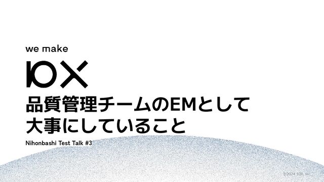 ©2024 10X, Inc. 品質管理チームのEMとして 大事にしていること Nihonbashi Test Talk #3