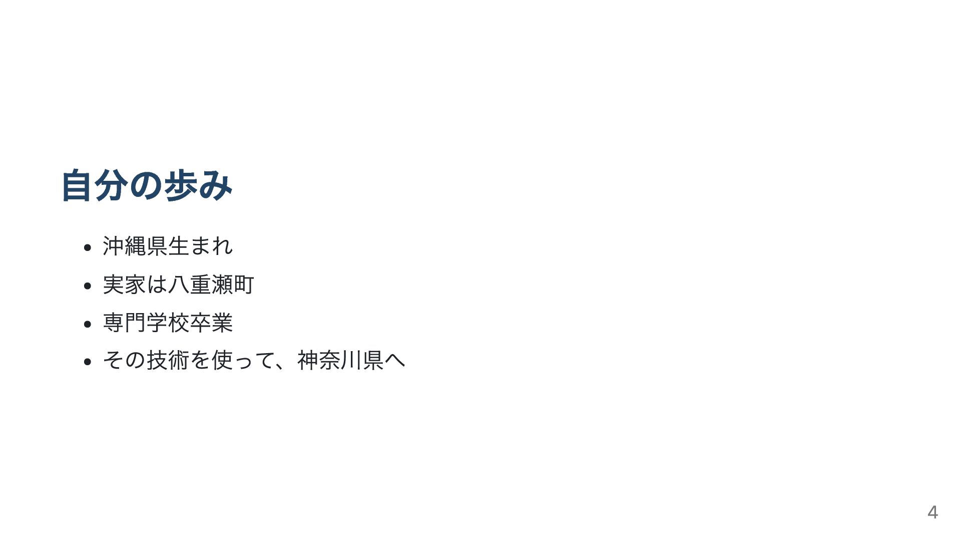 自分の歩み 沖縄県生まれ 実家は八重瀬町 専門学校卒業 その技術を使って、神奈川県へ 4