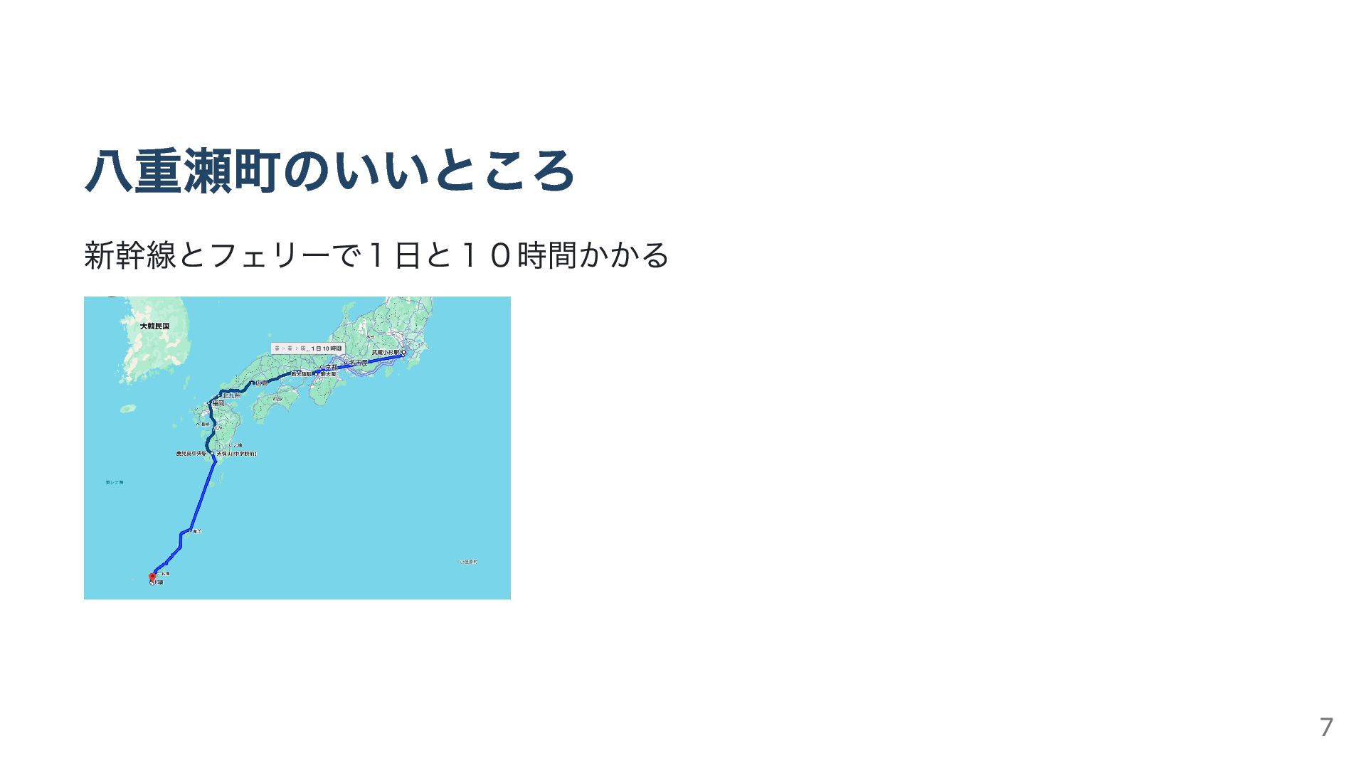 八重瀬町のいいところ 新幹線とフェリーで1日と10時間かかる 7