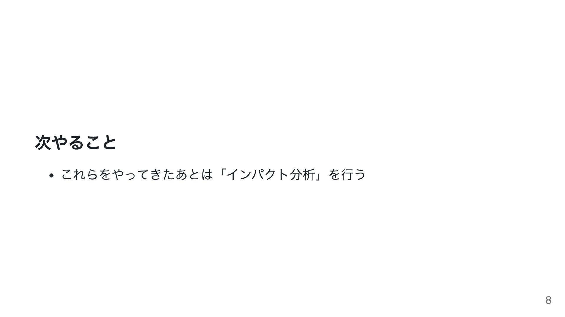 次やること これらをやってきたあとは「インパクト分析」を行う 8