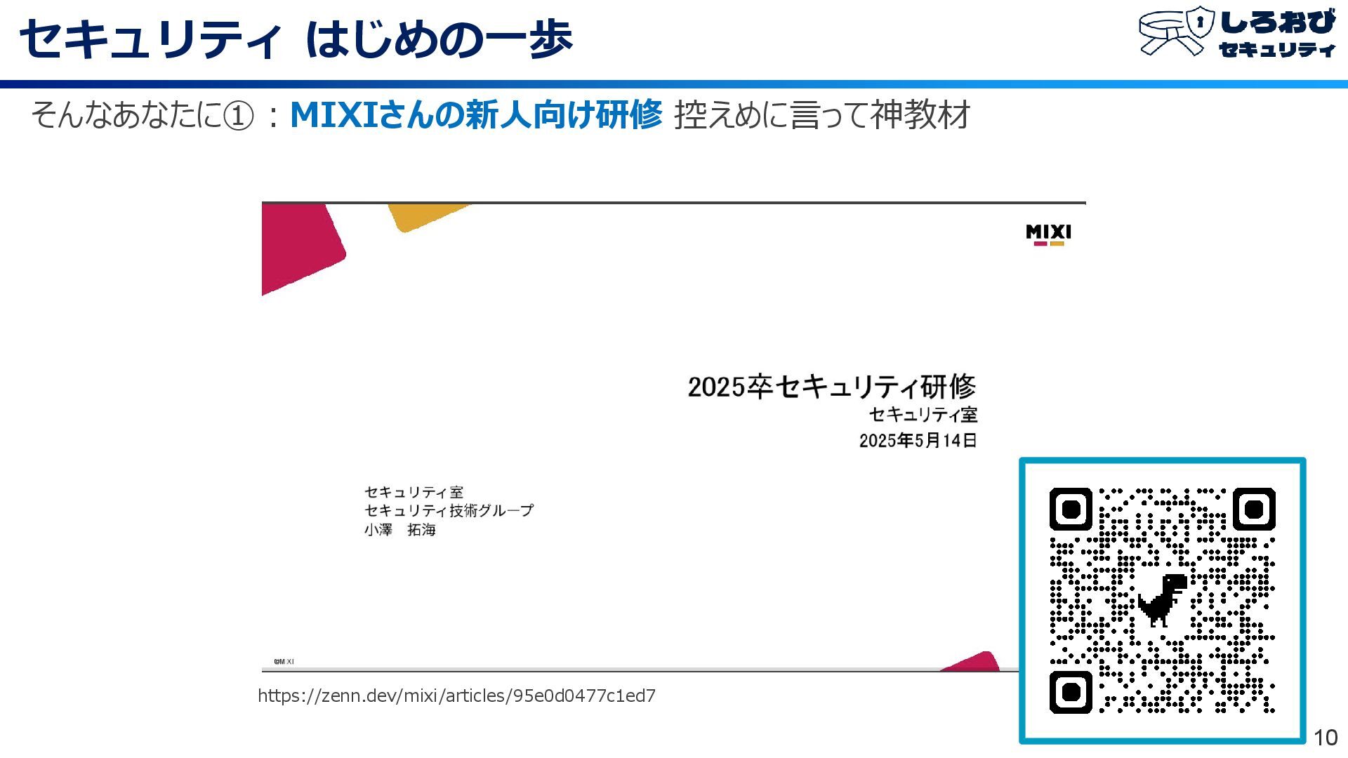 セキュリティ はじめの一歩 10 そんなあなたに①:MIXIさんの新人向け研修 控えめに言って神教材 https://zenn.dev/mixi/articles/95e0d0477c1ed7