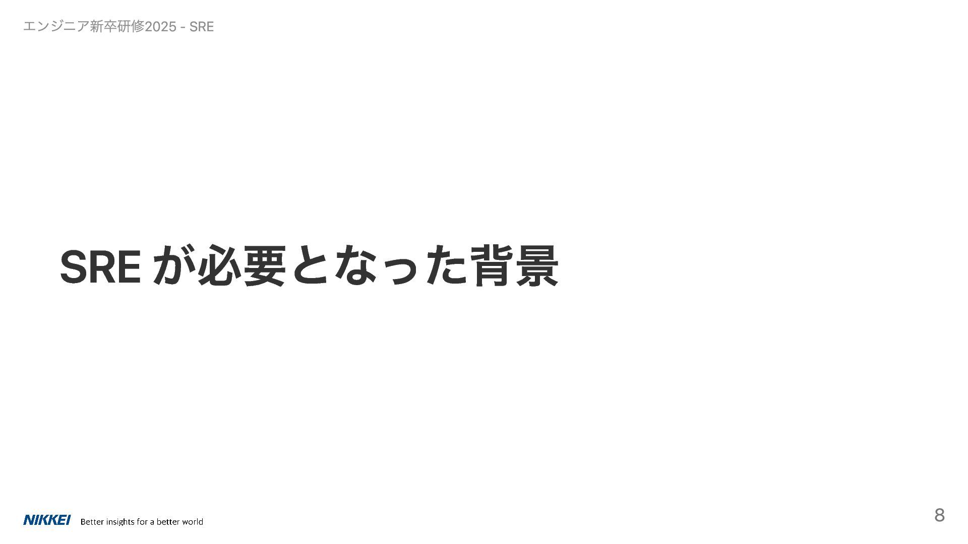 SRE が必要となった背景 エンジニア新卒研修2025 - SRE 8