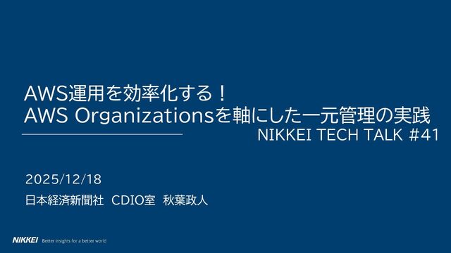 AWS運用を効率化する!AWS Organizationsを軸にした一元管理の実践/nikkei-tech-talk-202512