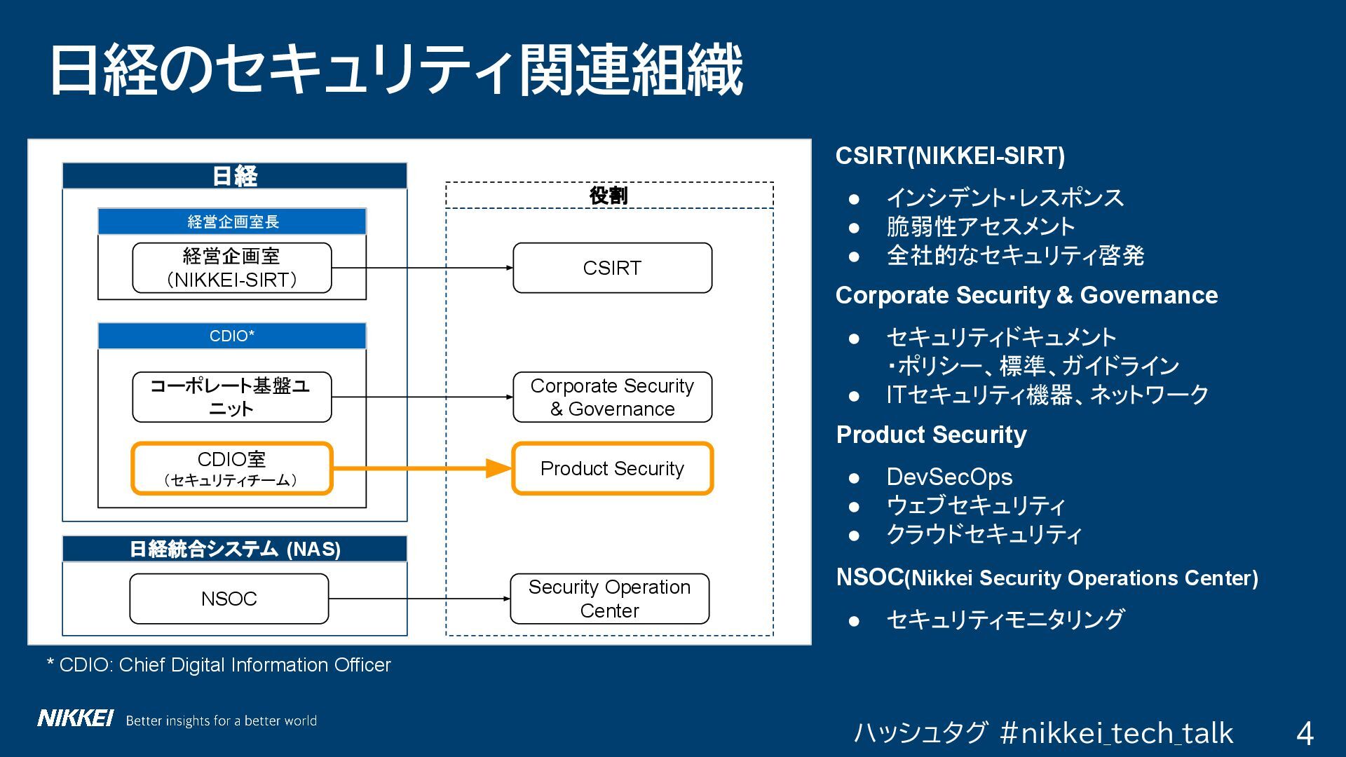 3. ハッシュタグ #nikkei_tech_talk 日経のセキュリティ関連組織 4 * CDIO: Chief Digital Information Officer