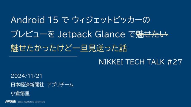 2024/11/21開催 NIKKEI Tech Talk #27 「日経電子版モバイルアプリ特集 iOS・Android 技術で報道を進化させる開発の現場」 日本経済新聞社 小倉さんの発表スライドです。