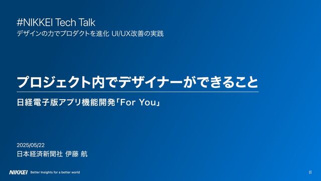 2025/05/22開催、NIKKEI Tech Talk #33 において プロジェクト内でデザイナーができること~日経電子版アプリ機能開発「For You」~ というタイトルで伊藤 航さんが発表しました #nikkei_tech_talk
