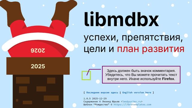 ⇨ https://sourcecraft.dev/dqdkfa ▪ дока ⇨ https://libmdbx.dqdkfa.ru Благодарности: ▪ Erigon за спонсирование ▪ CARTESIUS.agency за консультации ▪ всем пользователям за интерес 2026 2025