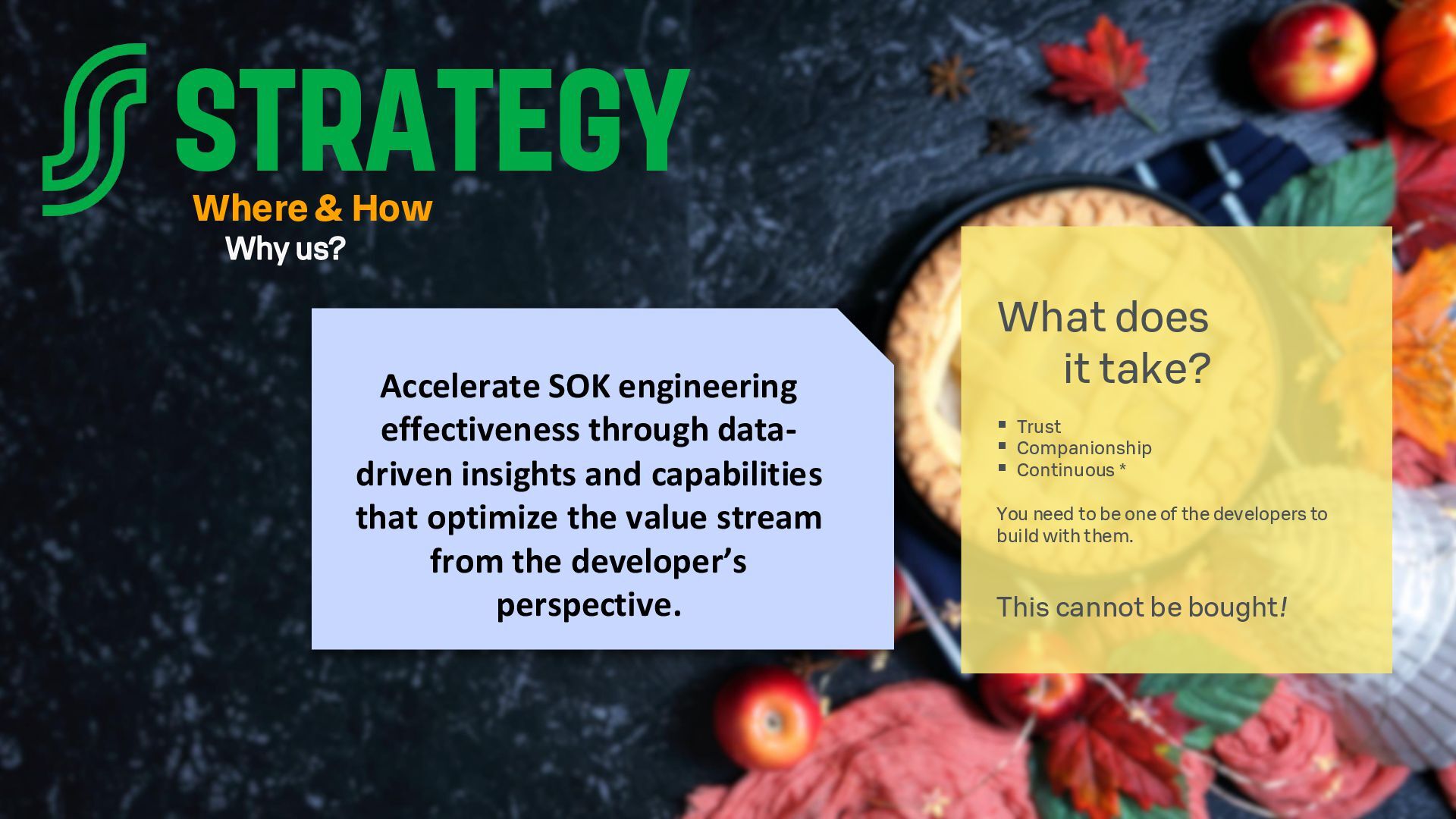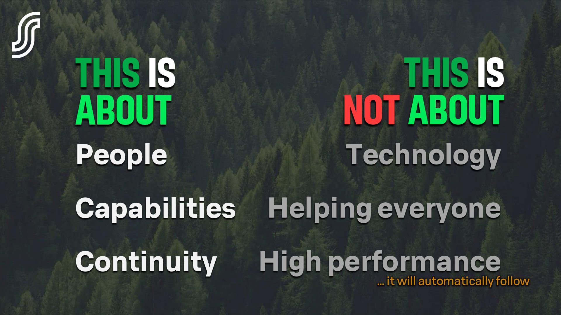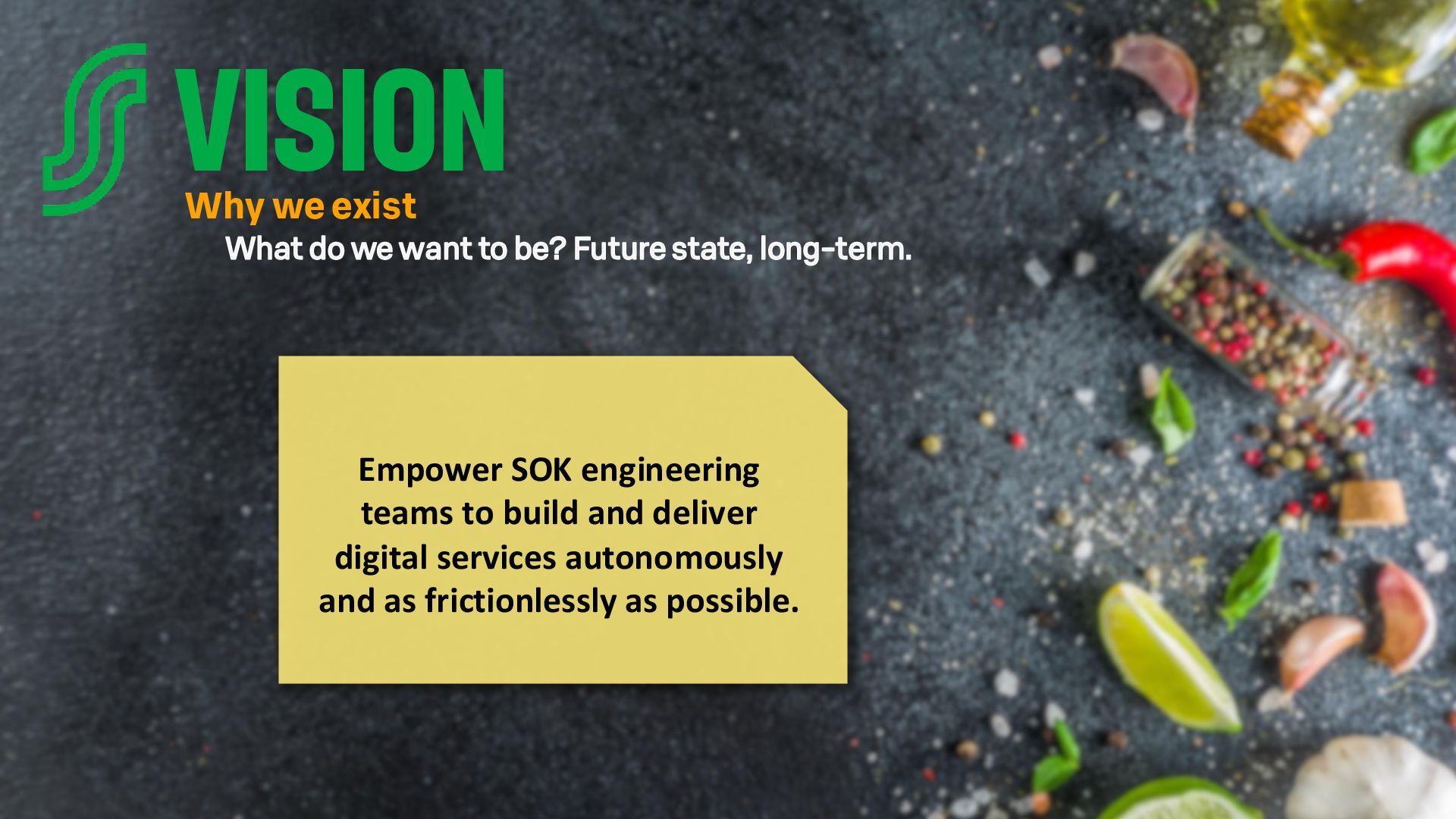 - How we (attempt to) drive change across the organisation.