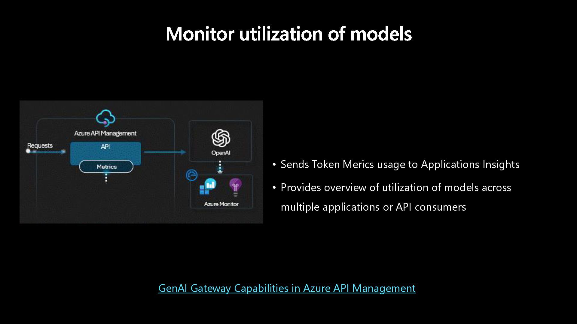 Applications Insights • Provides overview of utilization of models across multiple applications or API consumers GenAI Gateway Capabilities in Azure API Management
