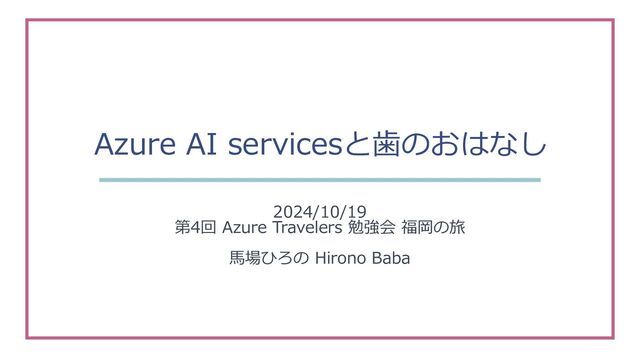 Azure AI servicesと歯のおはなし/AzureTravelers_Fukuoka2024_baba