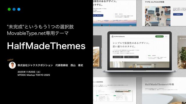 弊社では、MovableType.netによるウェブサイトの構築経験と、テンプレート設計やカスタムブロックの知見をもとに、未完成であることに柔軟さという強みを持たせたテーマ「HalfMadeThemes」を完成させました。