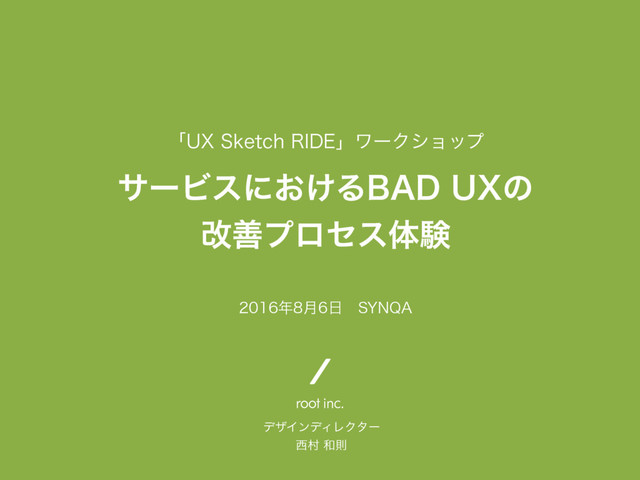 2016年8月6日に開催されたUX Sketch RIDEでのワークショップ用スライドデータ。話題のポケモンGOアプリを題材にサービスの課題抽出から改善案の立案、改修イメージのアウトプットまでを1チーム4名のグループワークで実施