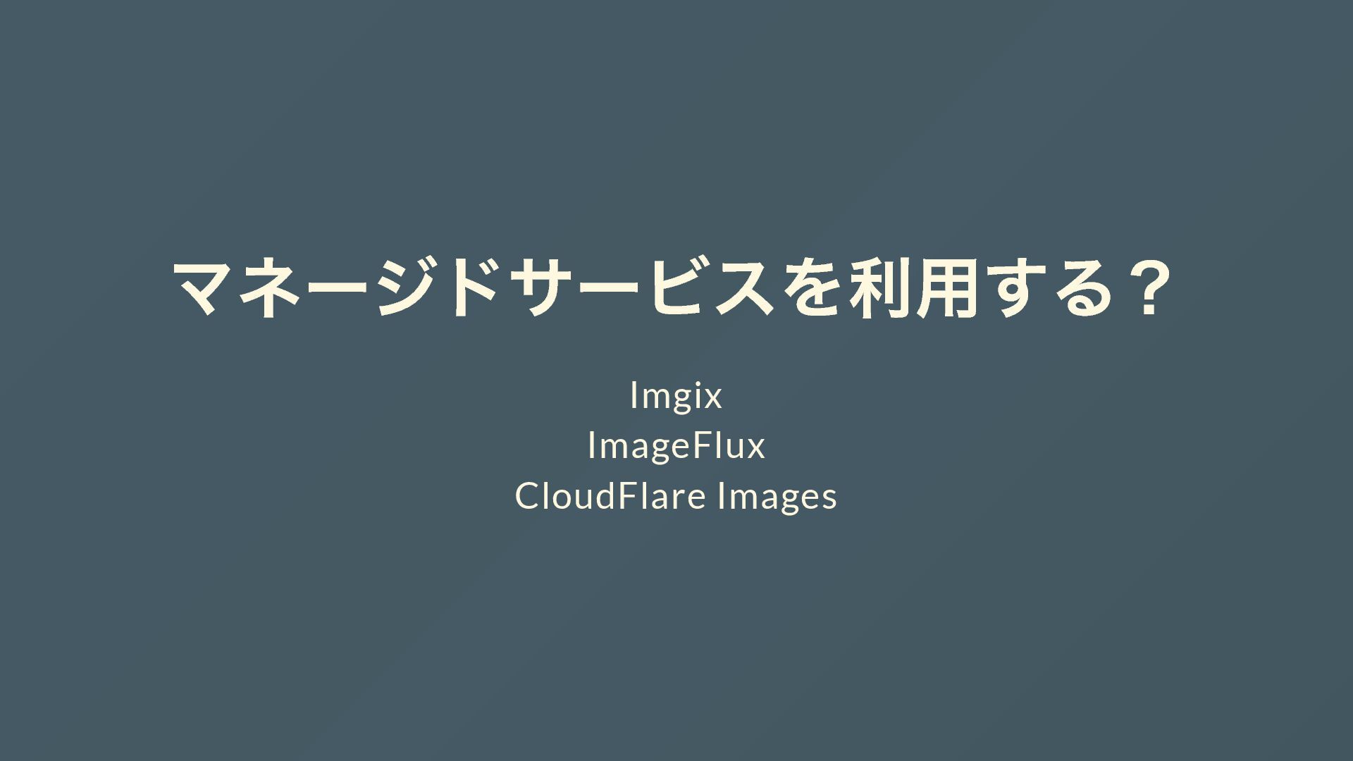 マネージドサービスを利用する? Imgix ImageFlux CloudFlare Images