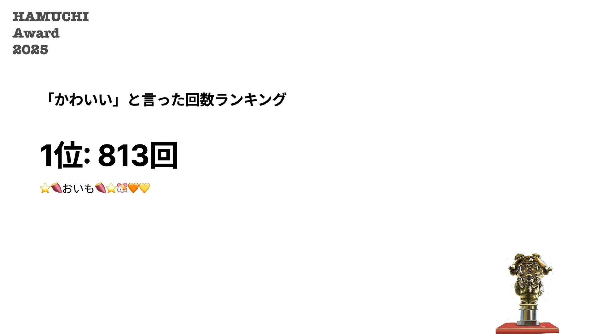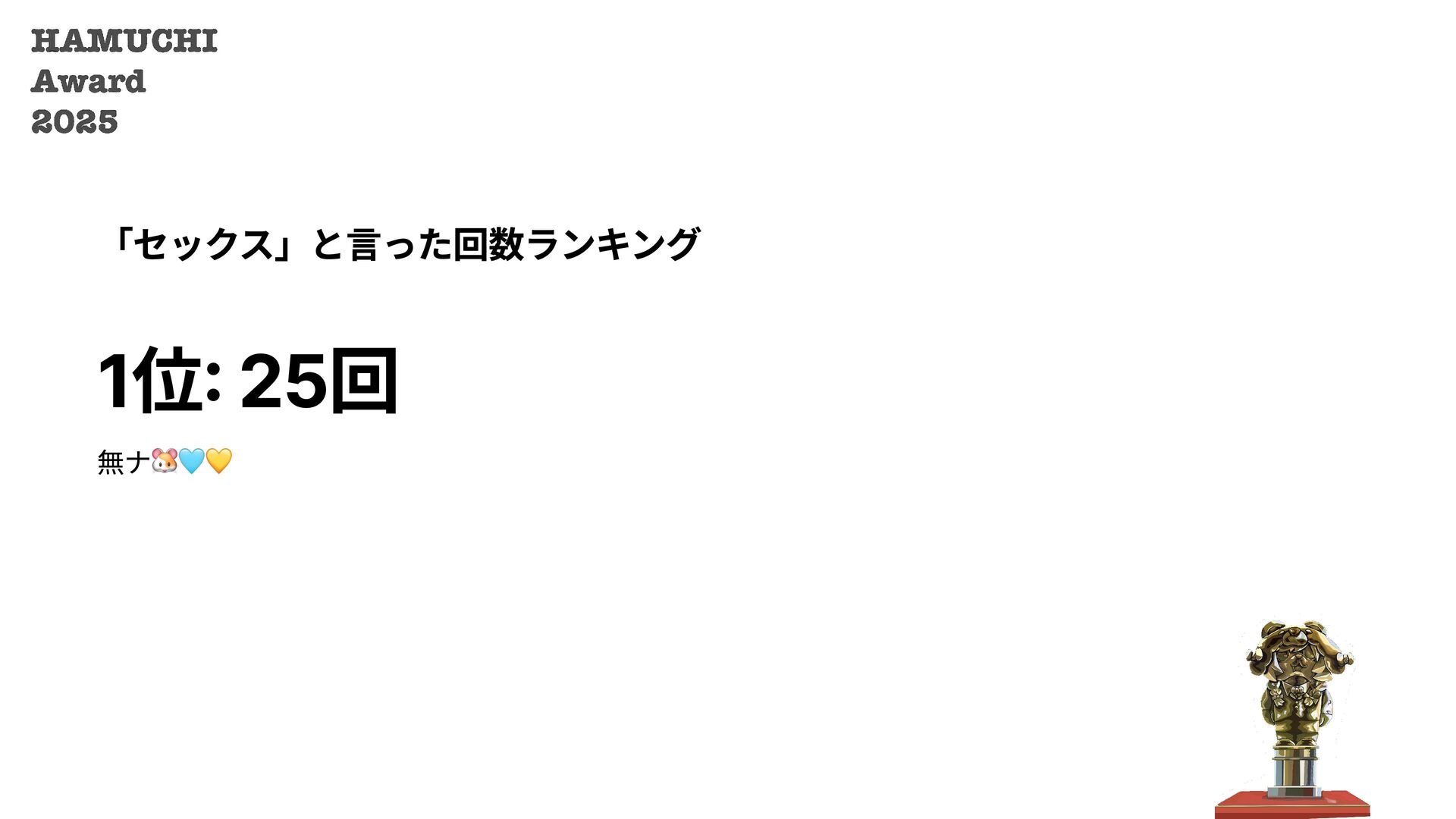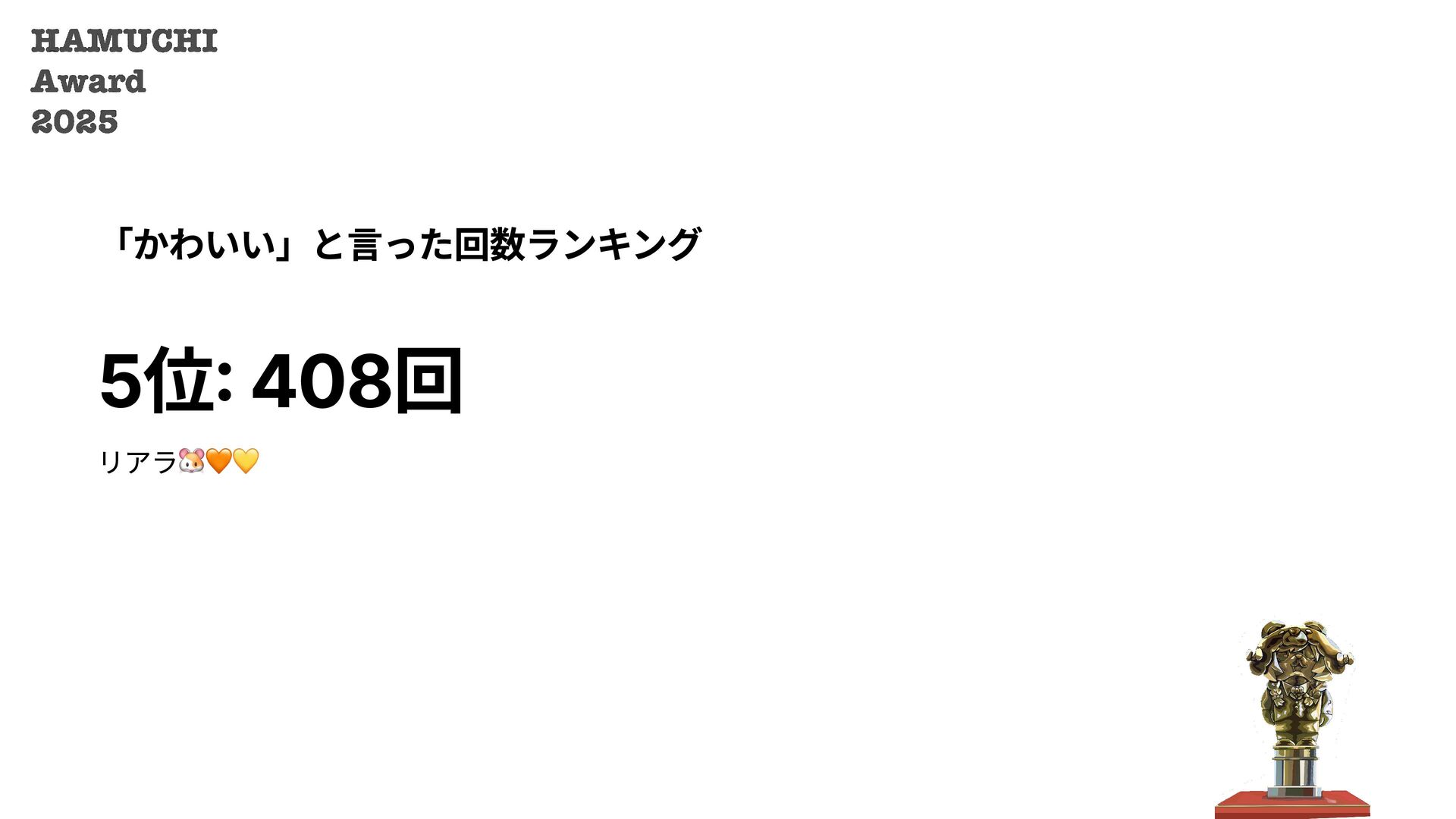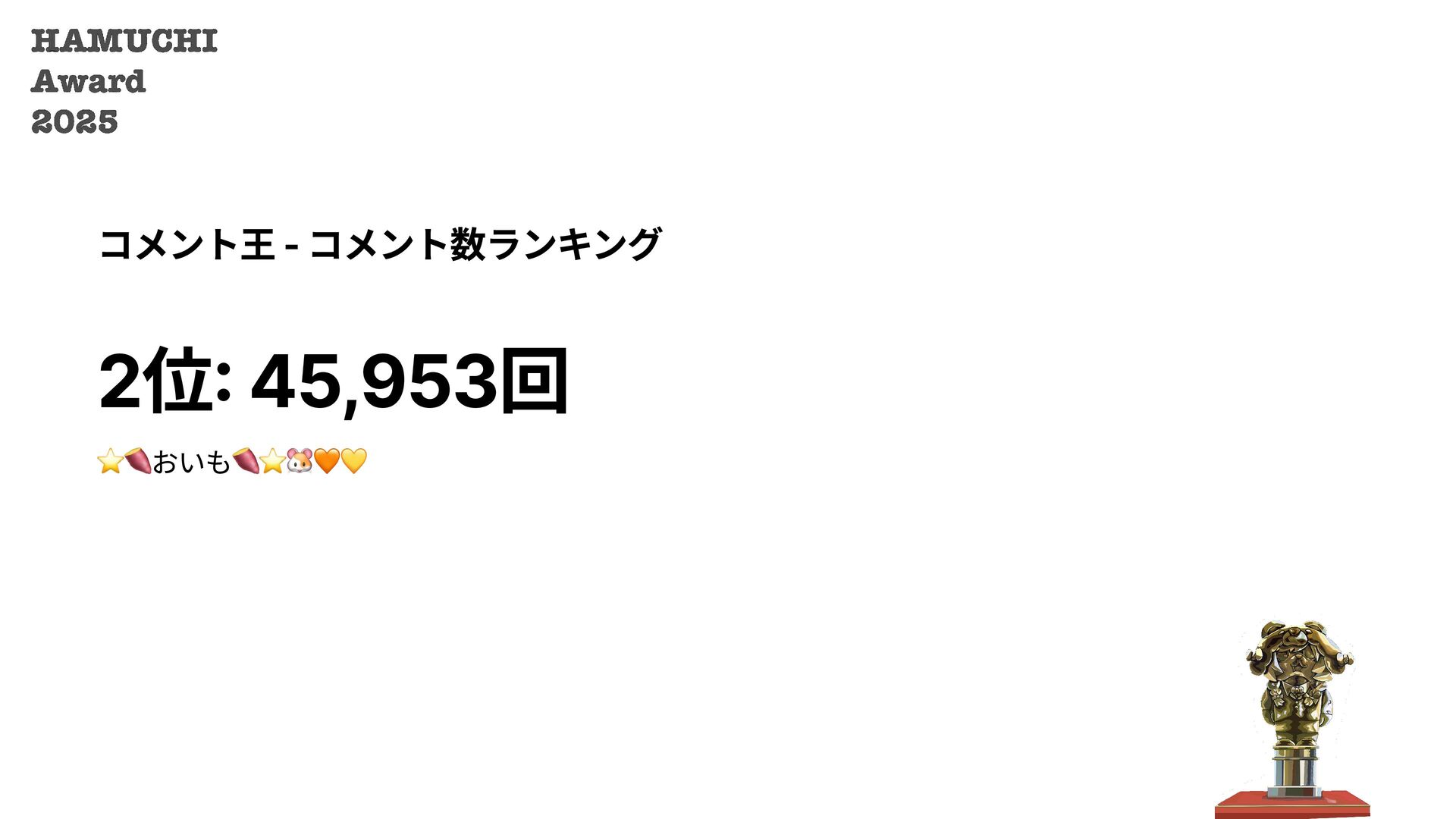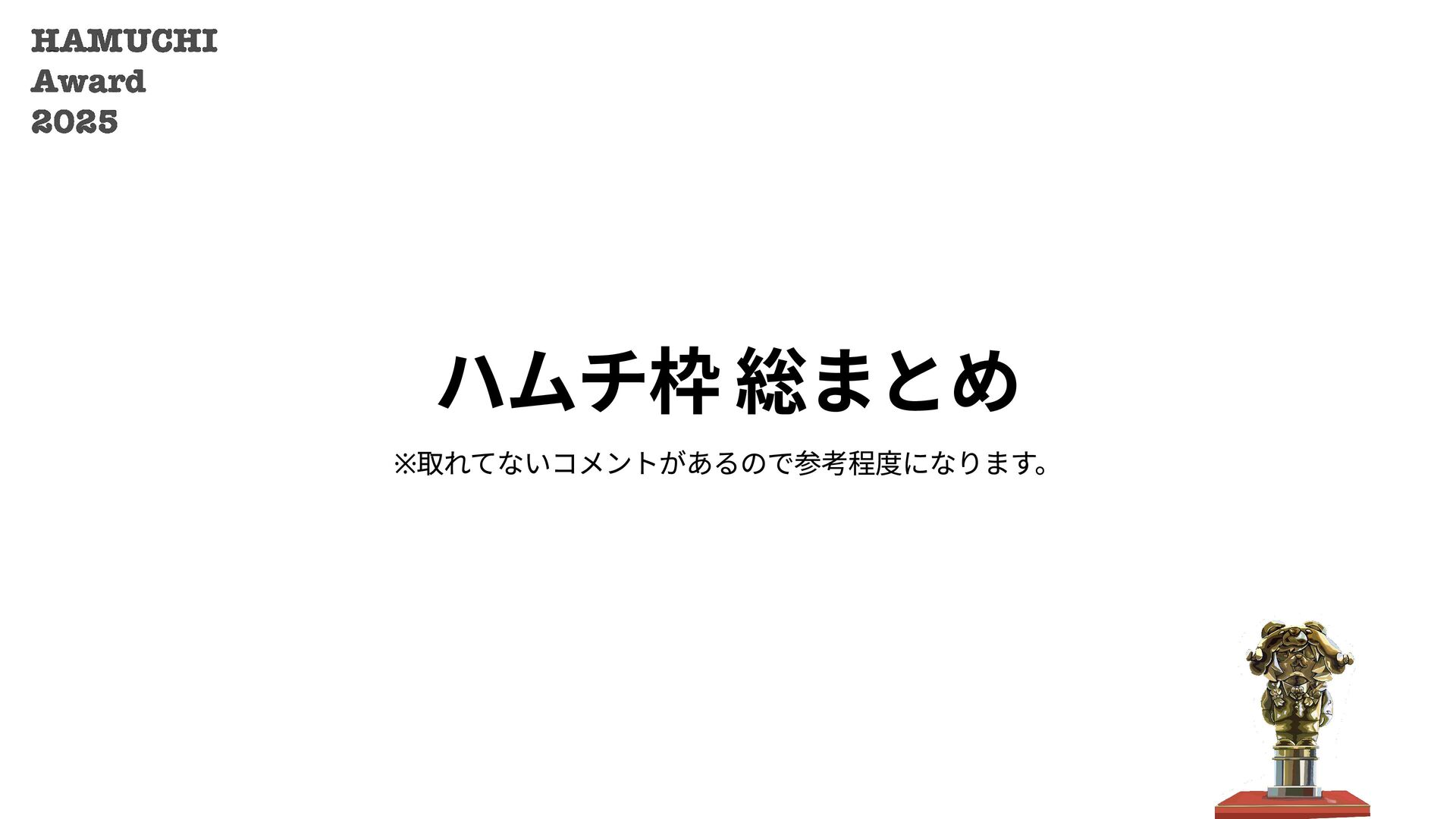 2025-12-30 21:00~ 【ハムチアワード2025年🏆】初見⭕️全データ解析⭕️流行語⭕️ REALITYの配信で使用したスライド アーカイブ: https://youtu.be/Mis0itM5TxU
