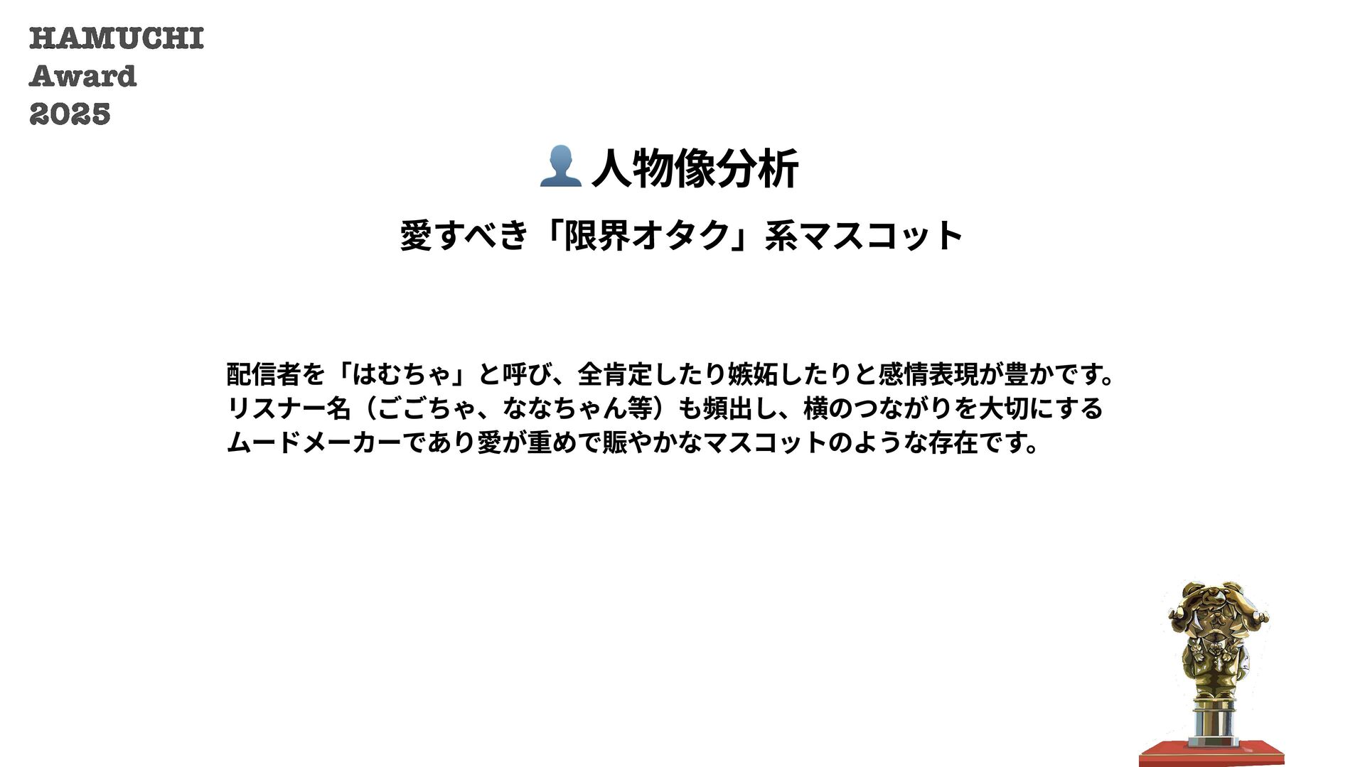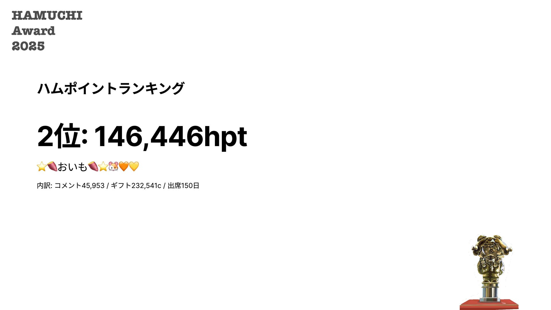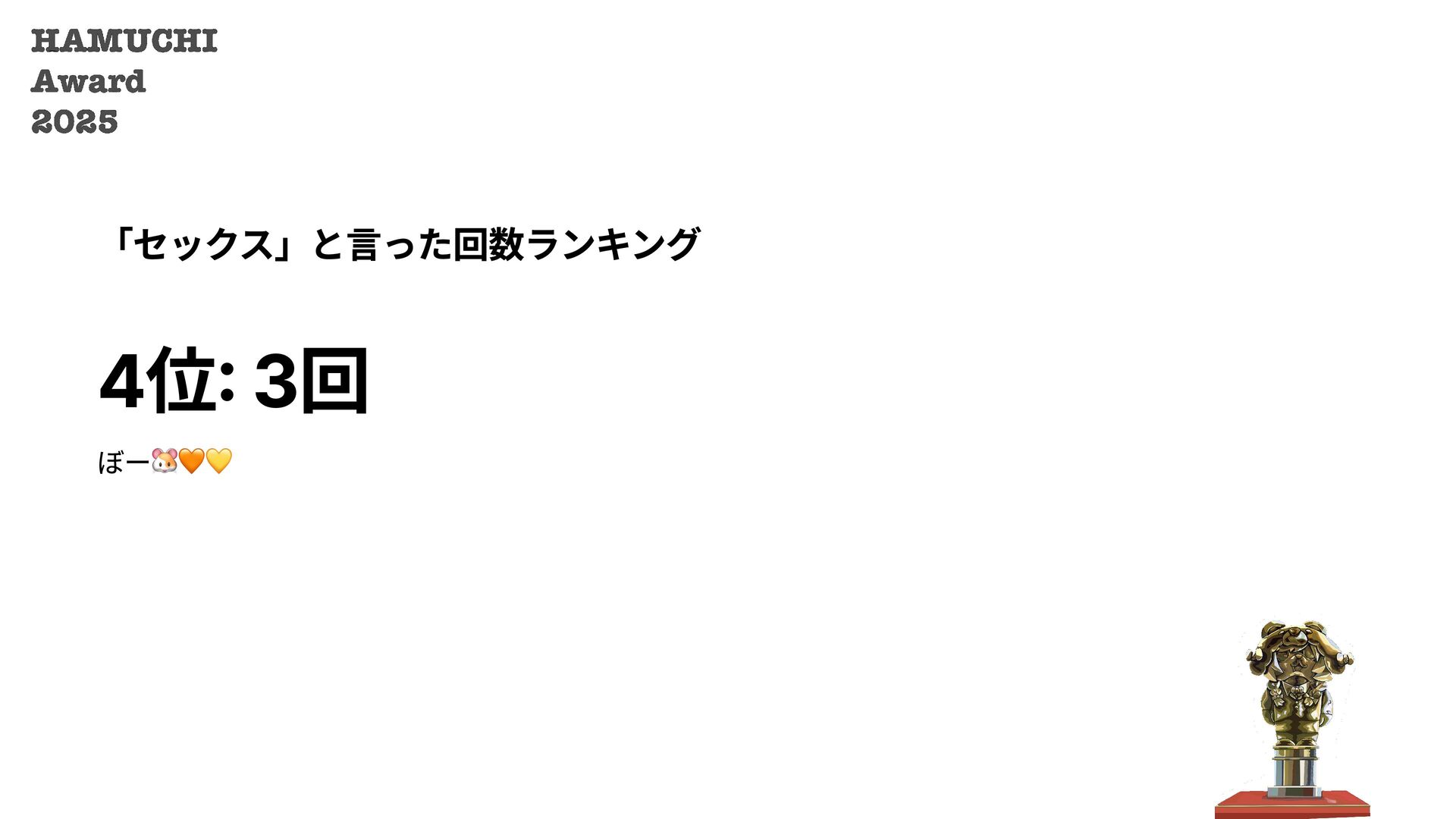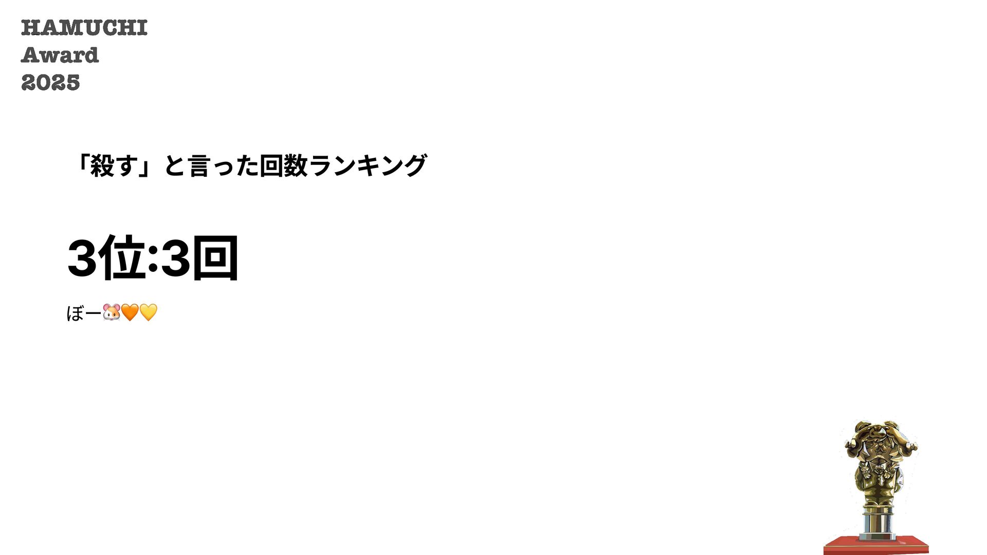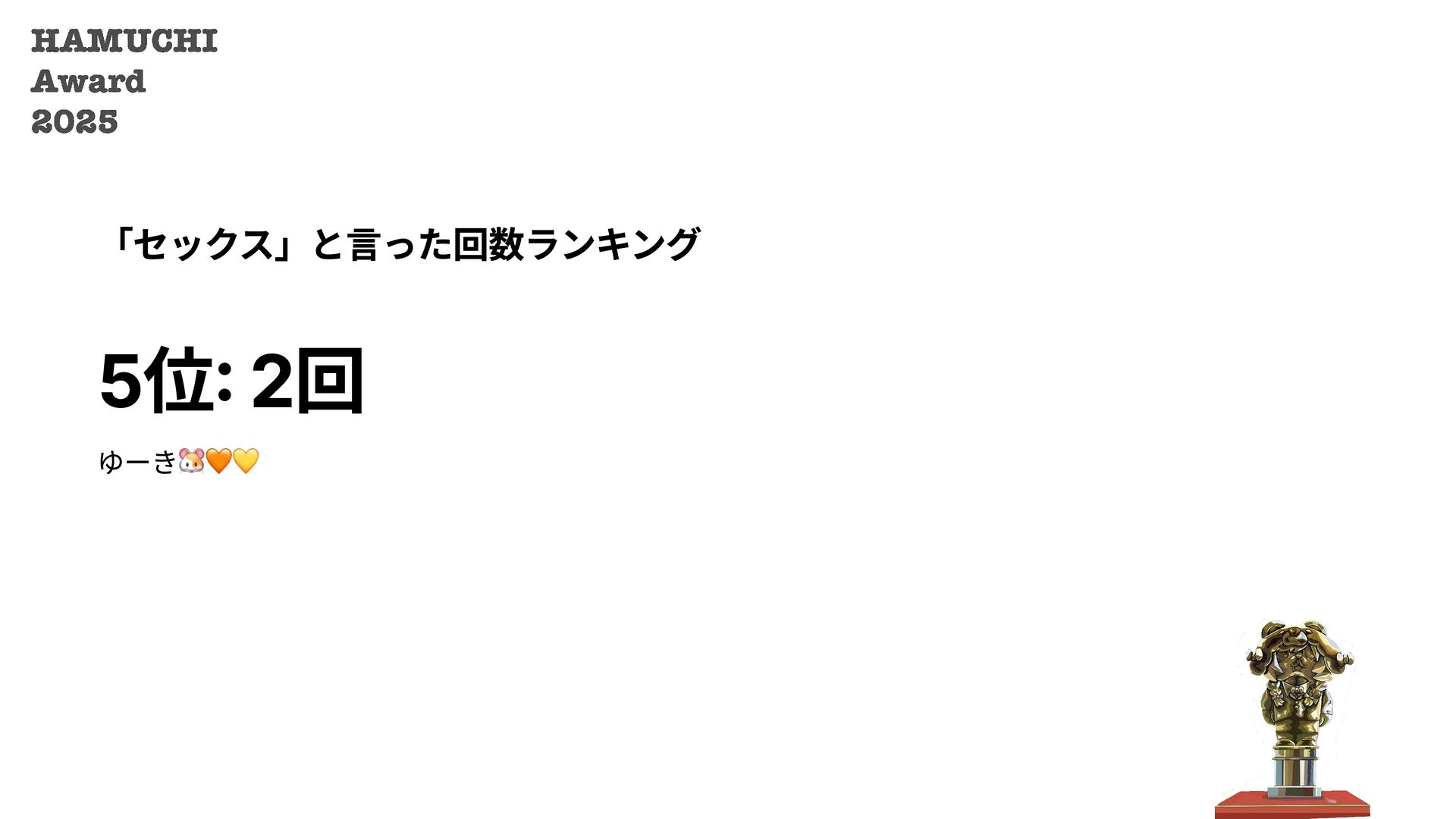 2025-12-30 21:00~ 【ハムチアワード2025年🏆】初見⭕️全データ解析⭕️流行語⭕️ REALITYの配信で使用したスライド アーカイブ: https://youtu.be/Mis0itM5TxU