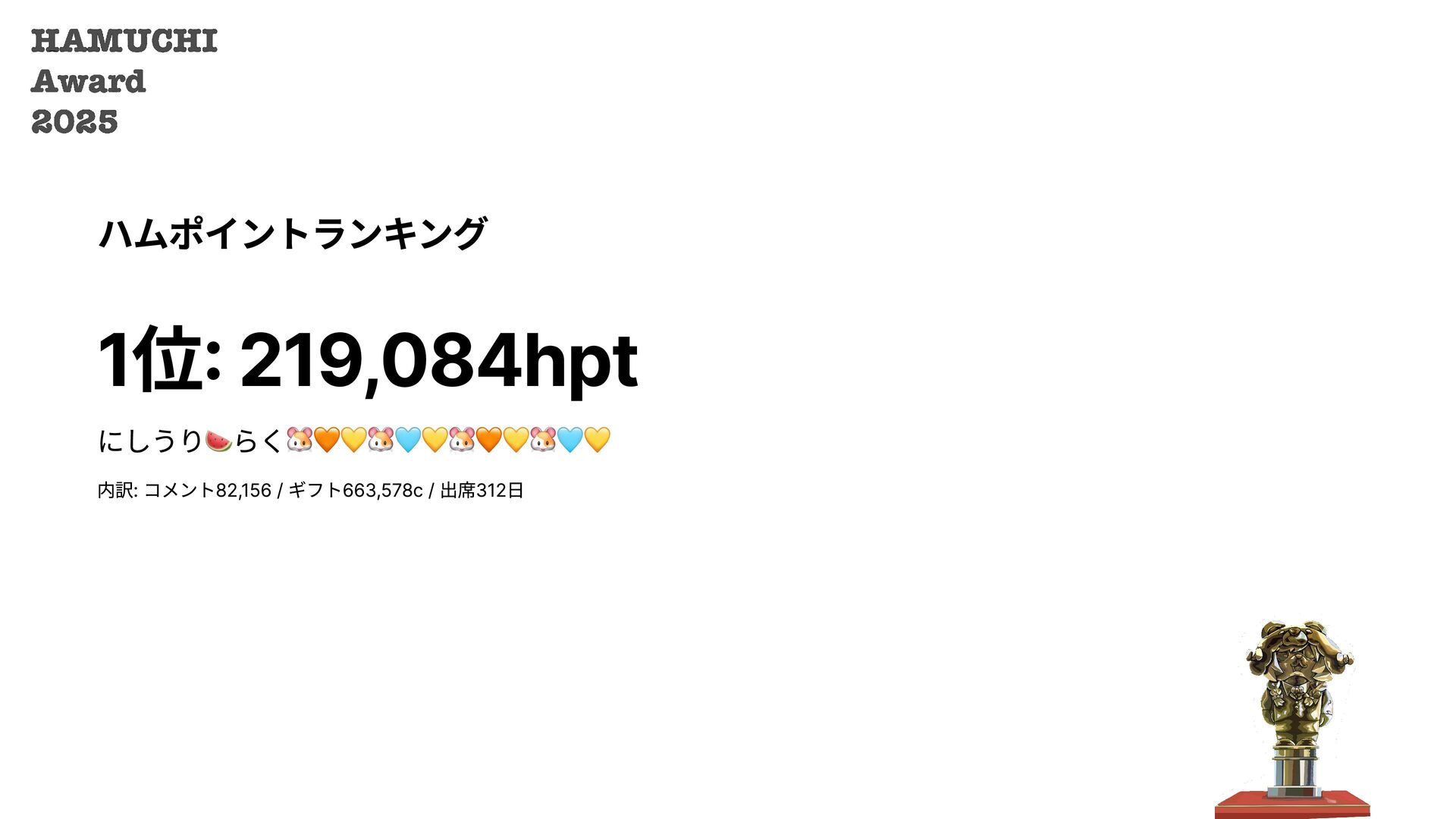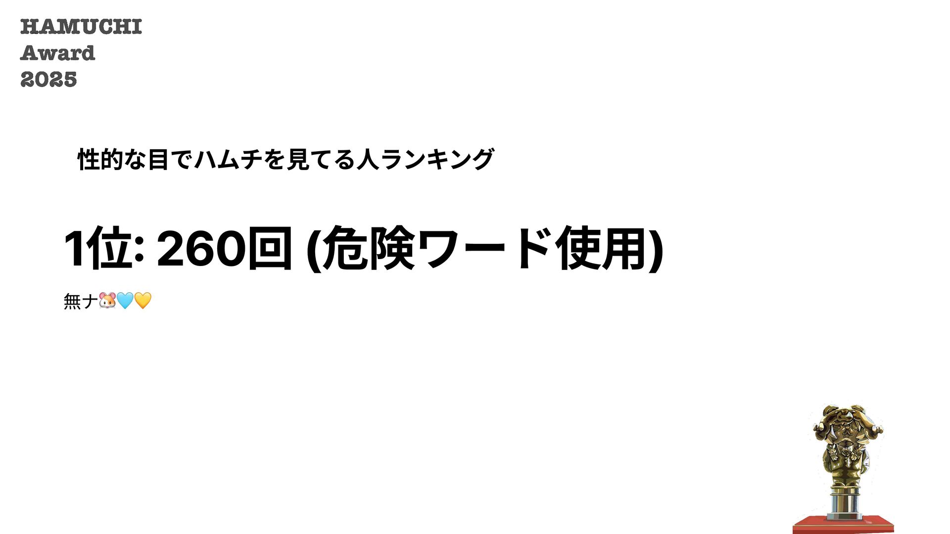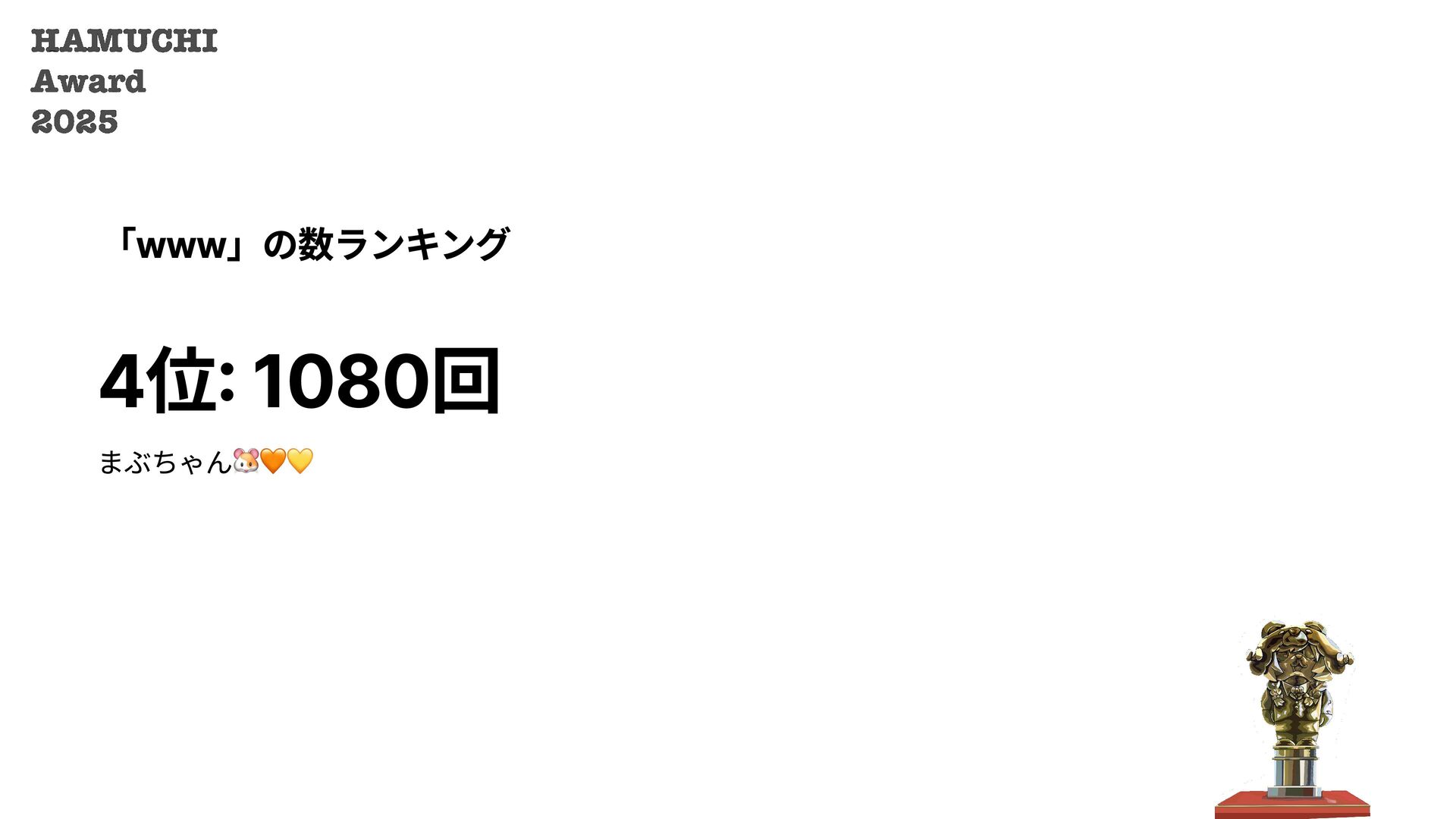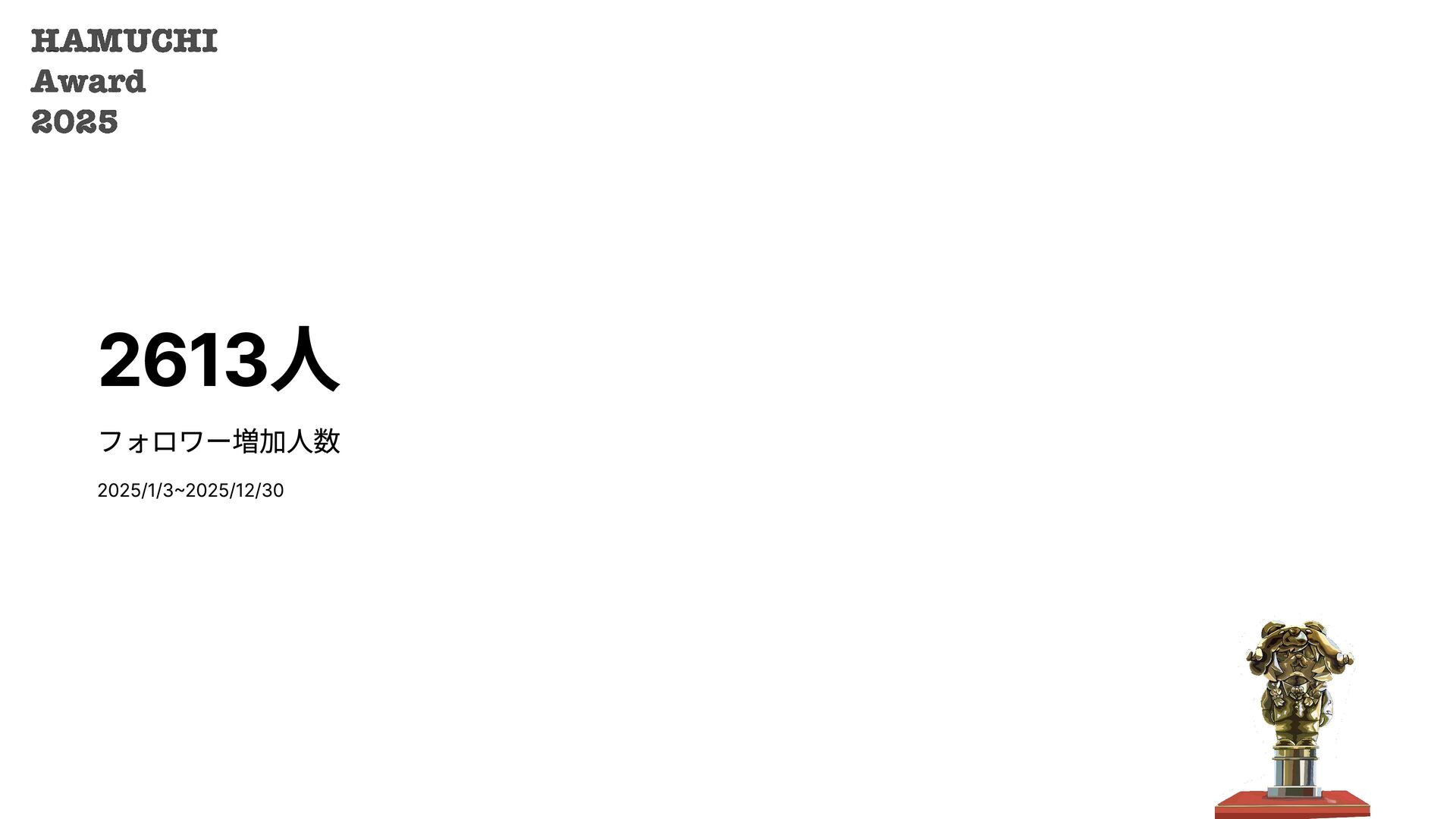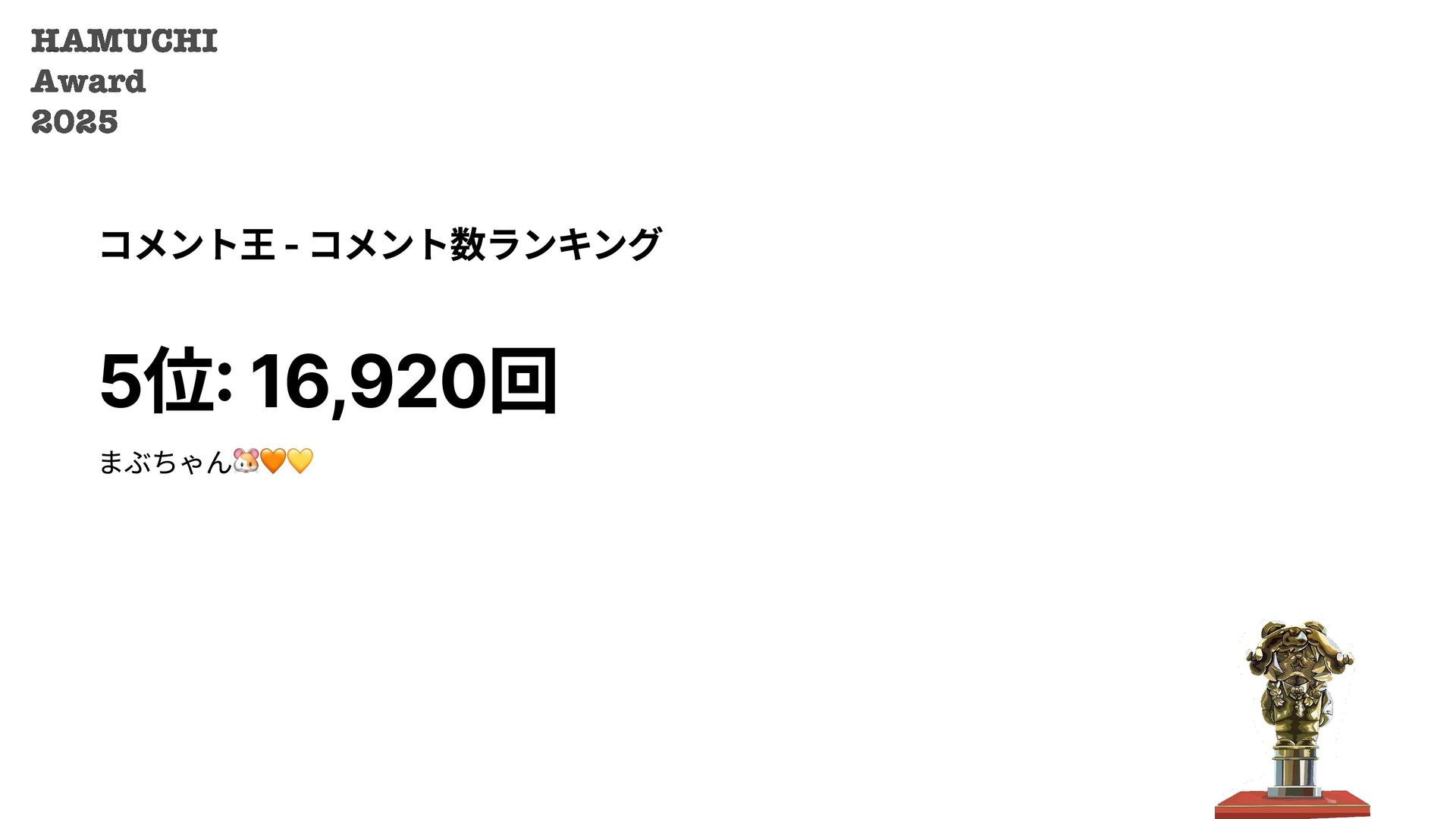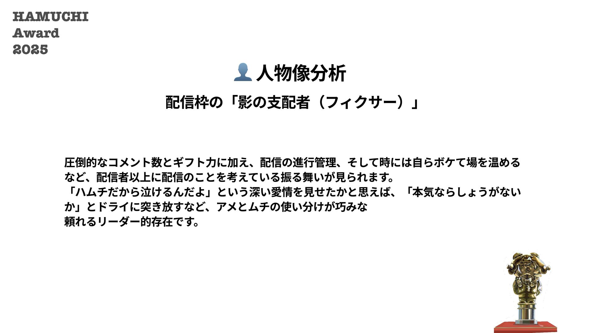 2025-12-30 21:00~ 【ハムチアワード2025年🏆】初見⭕️全データ解析⭕️流行語⭕️ REALITYの配信で使用したスライド アーカイブ: https://youtu.be/Mis0itM5TxU