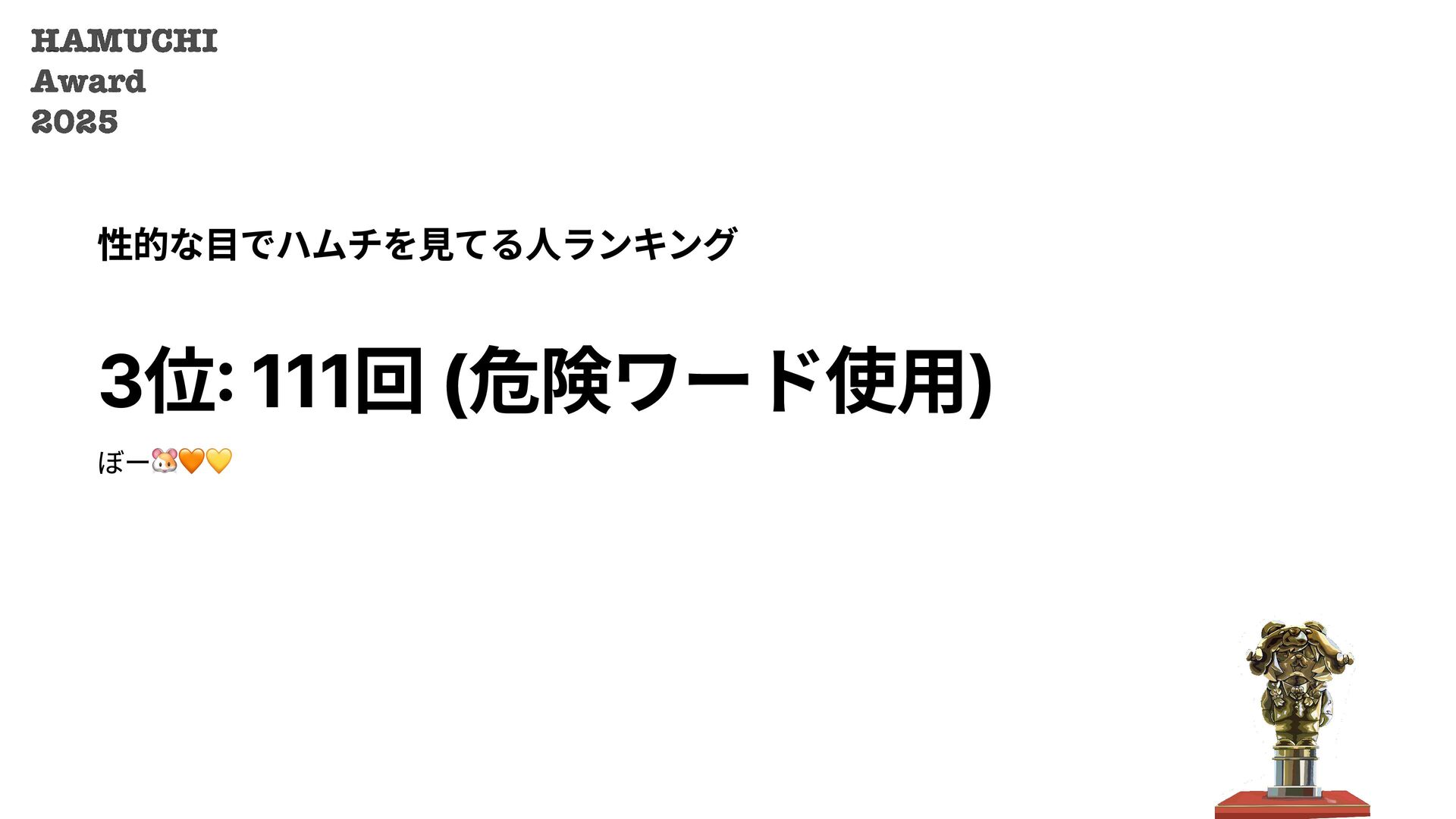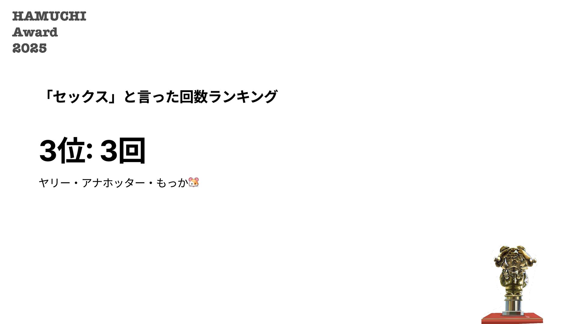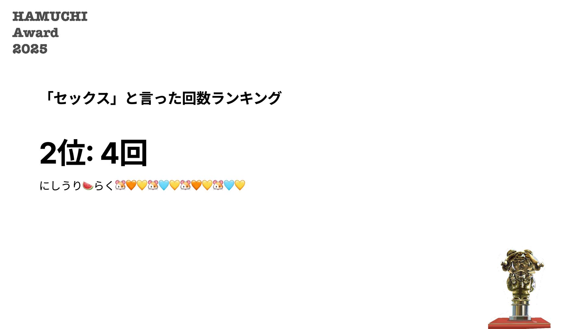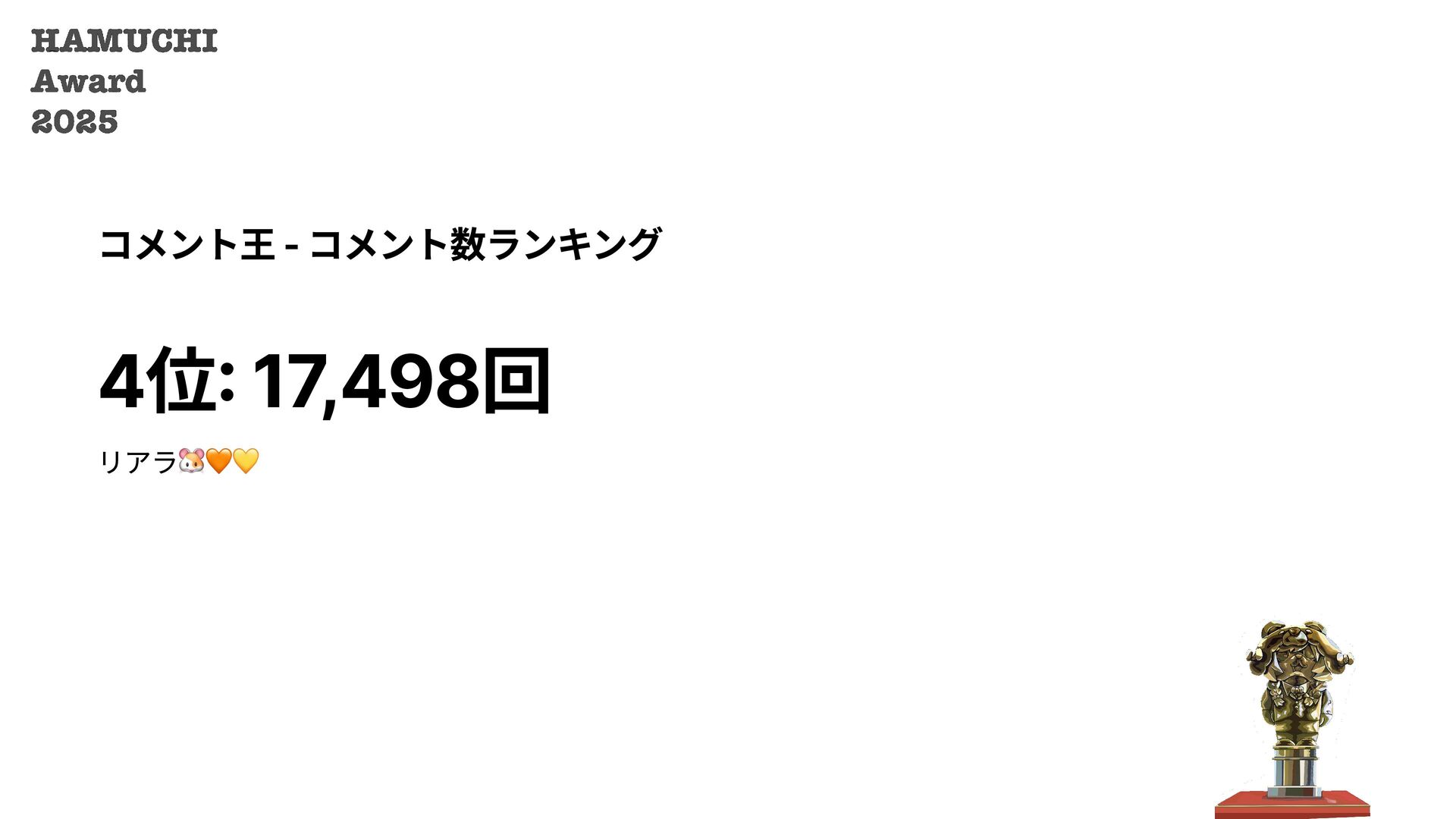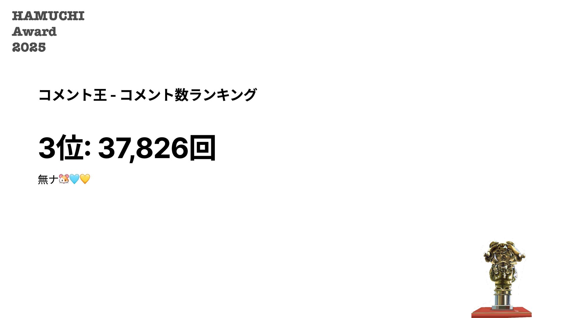 2025-12-30 21:00~ 【ハムチアワード2025年🏆】初見⭕️全データ解析⭕️流行語⭕️ REALITYの配信で使用したスライド アーカイブ: https://youtu.be/Mis0itM5TxU