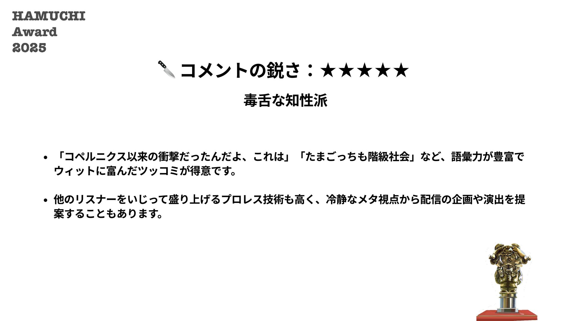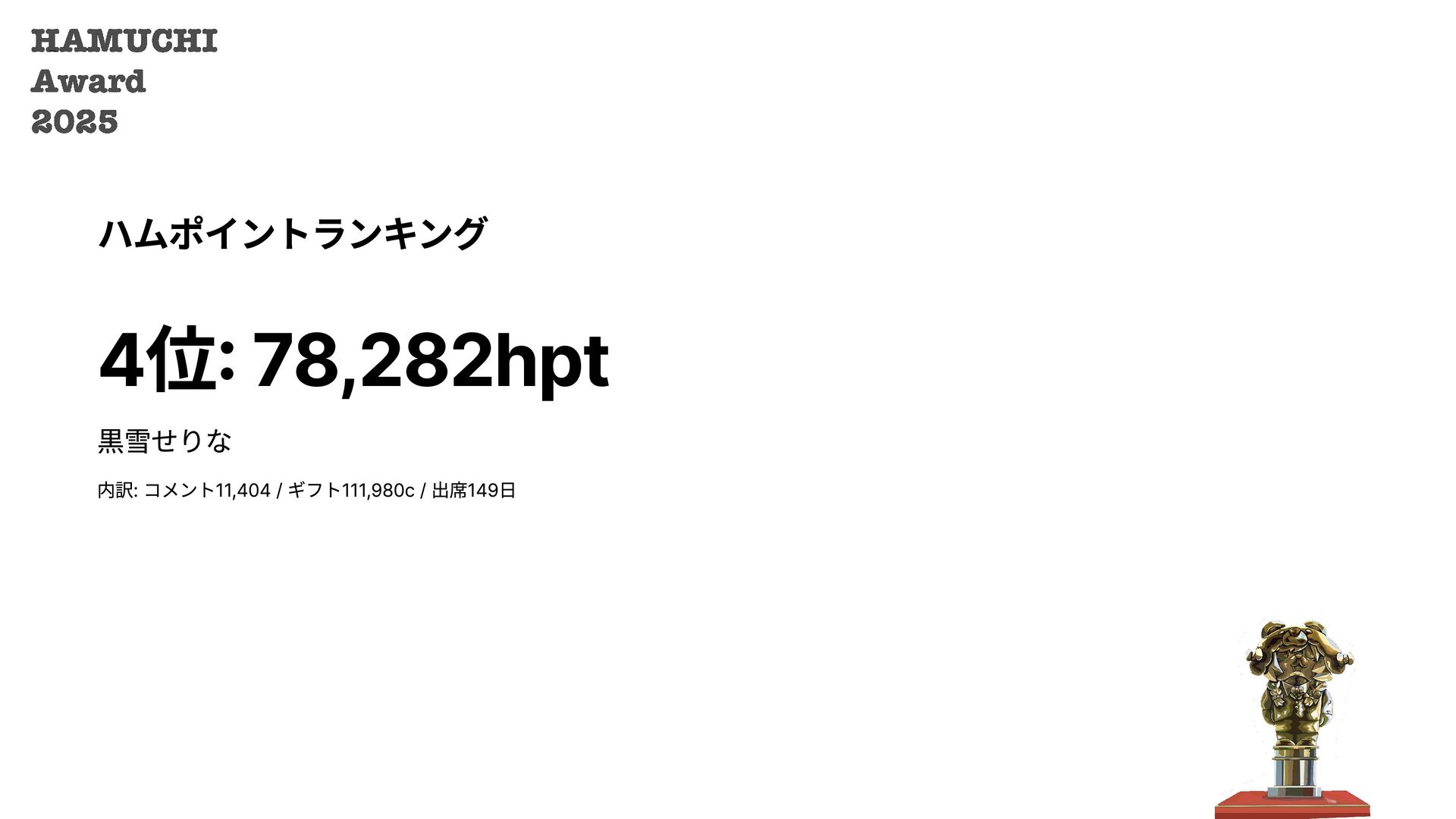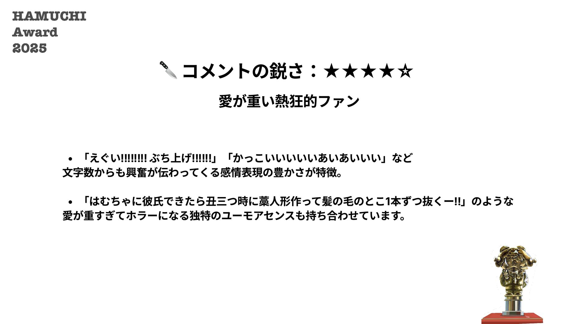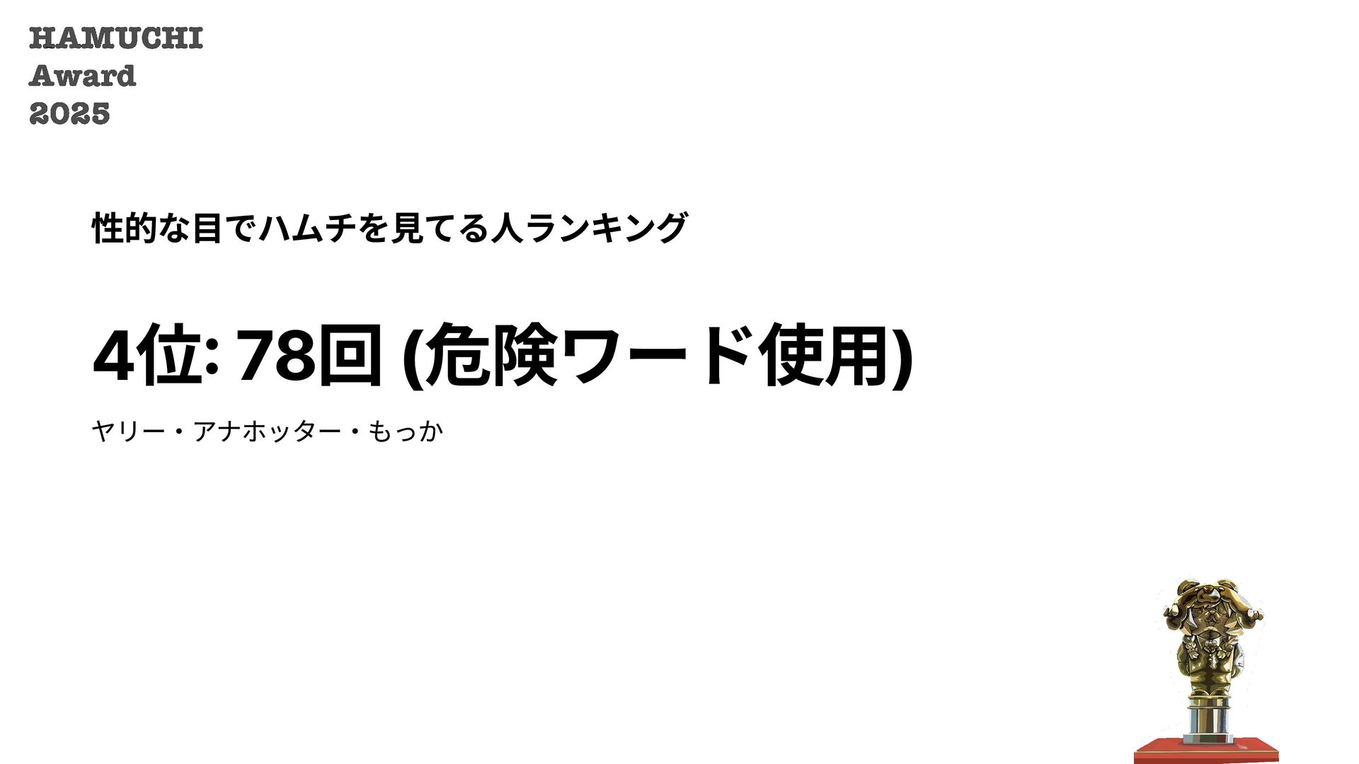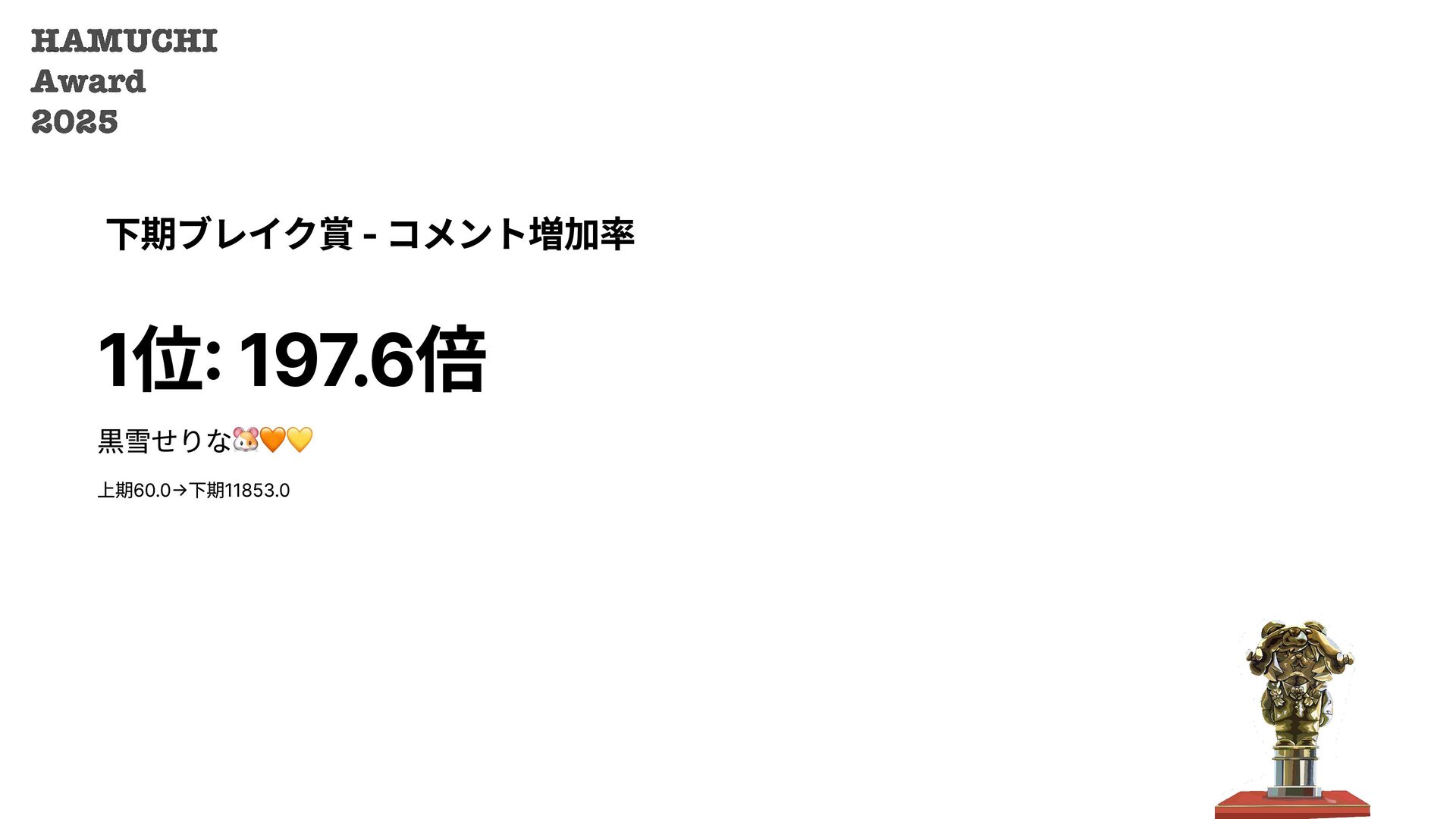 2025-12-30 21:00~ 【ハムチアワード2025年🏆】初見⭕️全データ解析⭕️流行語⭕️ REALITYの配信で使用したスライド アーカイブ: https://youtu.be/Mis0itM5TxU