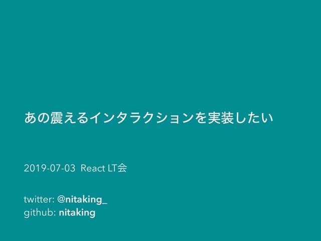 ͋ͷ͑ΔΠϯλϥΫγϣϯΛ࣮͍ͨ͠ 2019-07-03 React LTձ twitter: @nitaking_ github: nitaking
