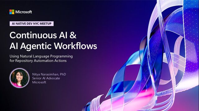 In this talk, we’ll look at work being done by our colleagues at GitHub Next and Microsoft Research on a concept called Continuous AI that is powered by AI Agentic Workflows. We’ll look at what kinds of tasks this is good for, show examples of these workflows in action, and give you an intuitive sense for how you can apply these tools and concepts to your own projects. The work is not a product - but rather, an experimental platform for learning and exploring the possibilities of agentic AI in automating and managing repository actions. Learn more about the project here.