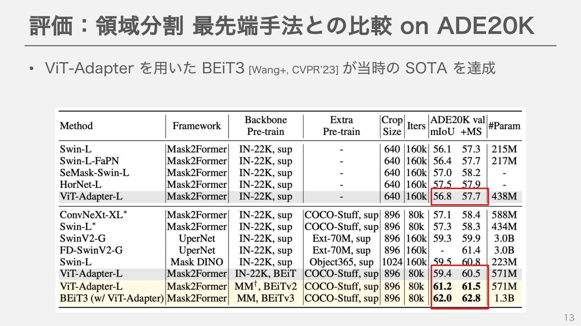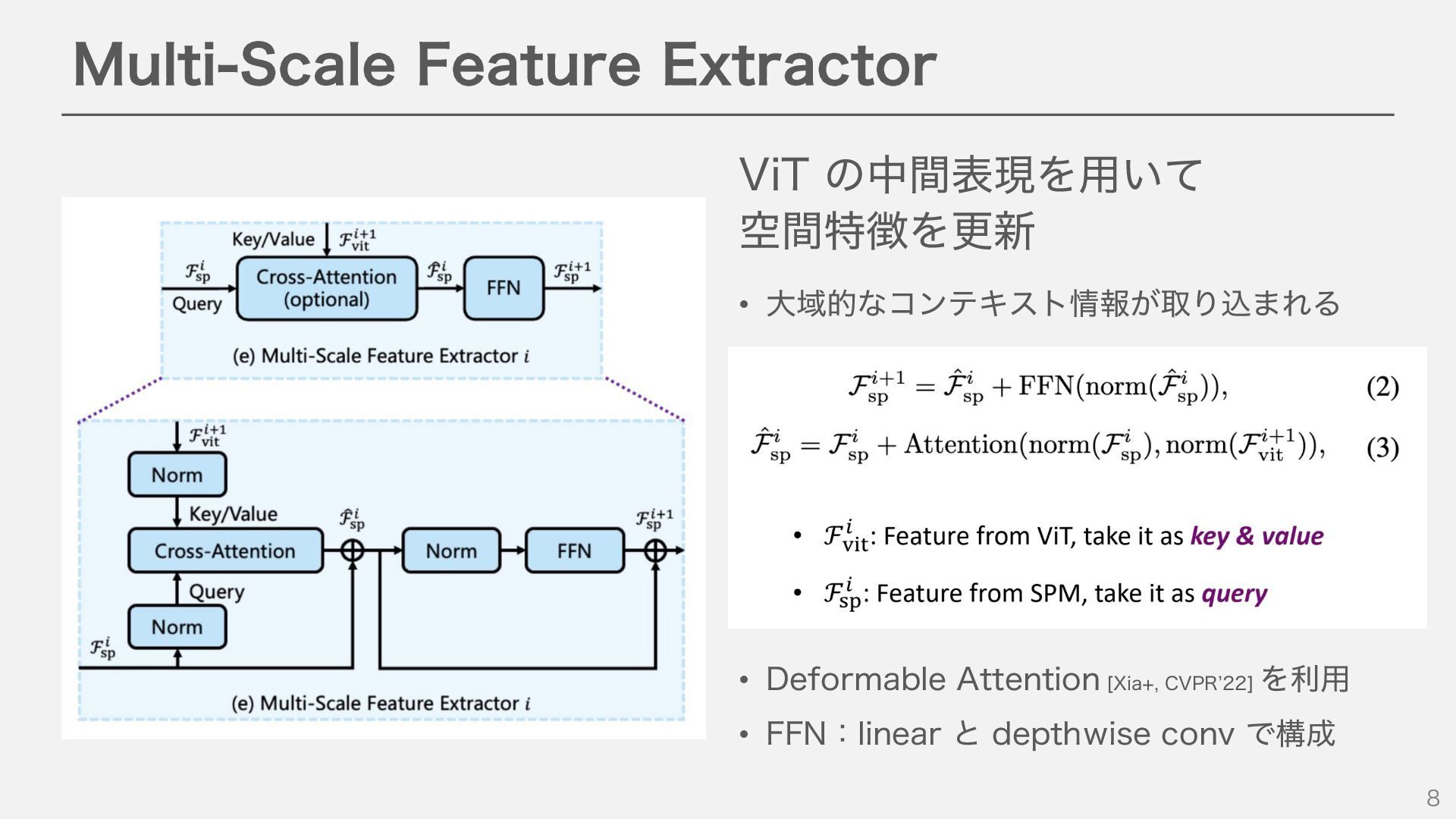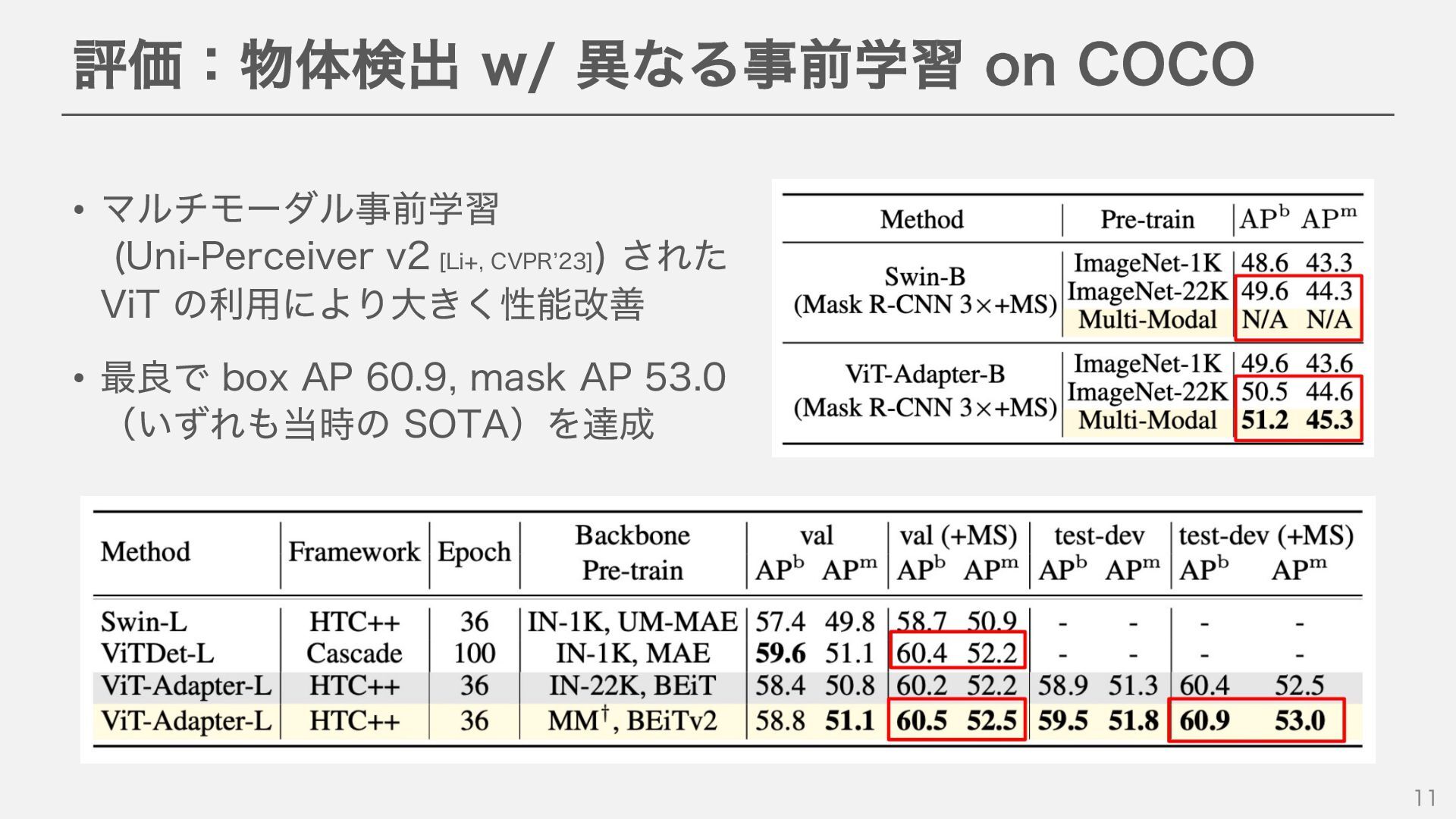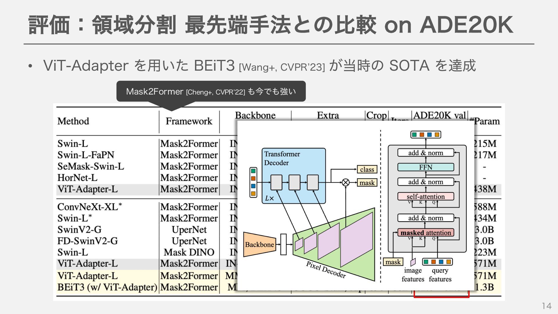 Vision Transformerに視覚的帰納バイアスを注入することで密予測タスクへ効率的に適応させる手法である、ViT-Adapterについての輪講資料です。