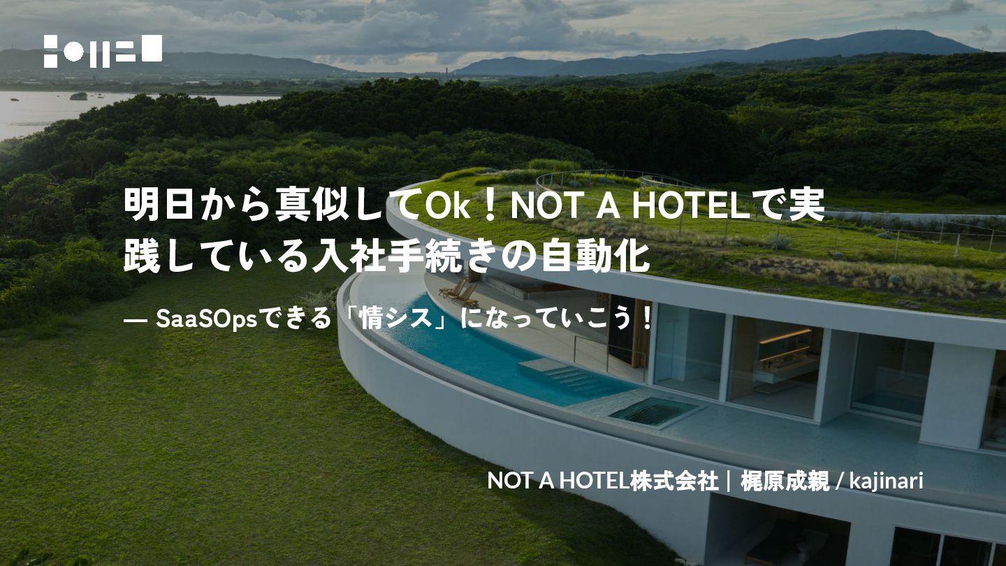 明日から真似してOk!NOT A HOTELで実 践している入社手続きの自動化 ― SaaSOpsできる「情シス」になっていこう! NOT A HOTEL株式会社 |