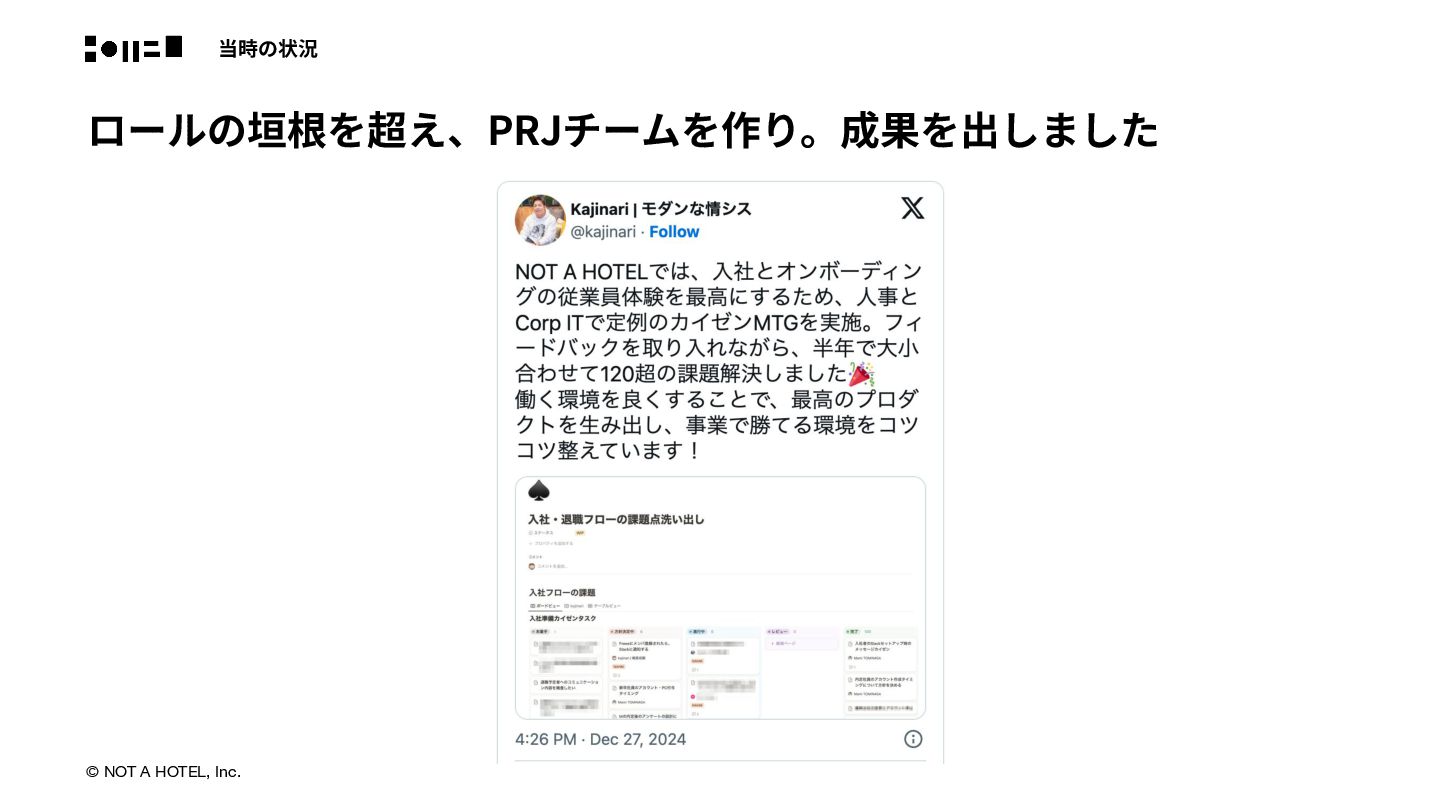 © NOT A HOTEL, Inc. 当時の状況 ロールの垣根を超え、PRJチームを作り。成果を出しました