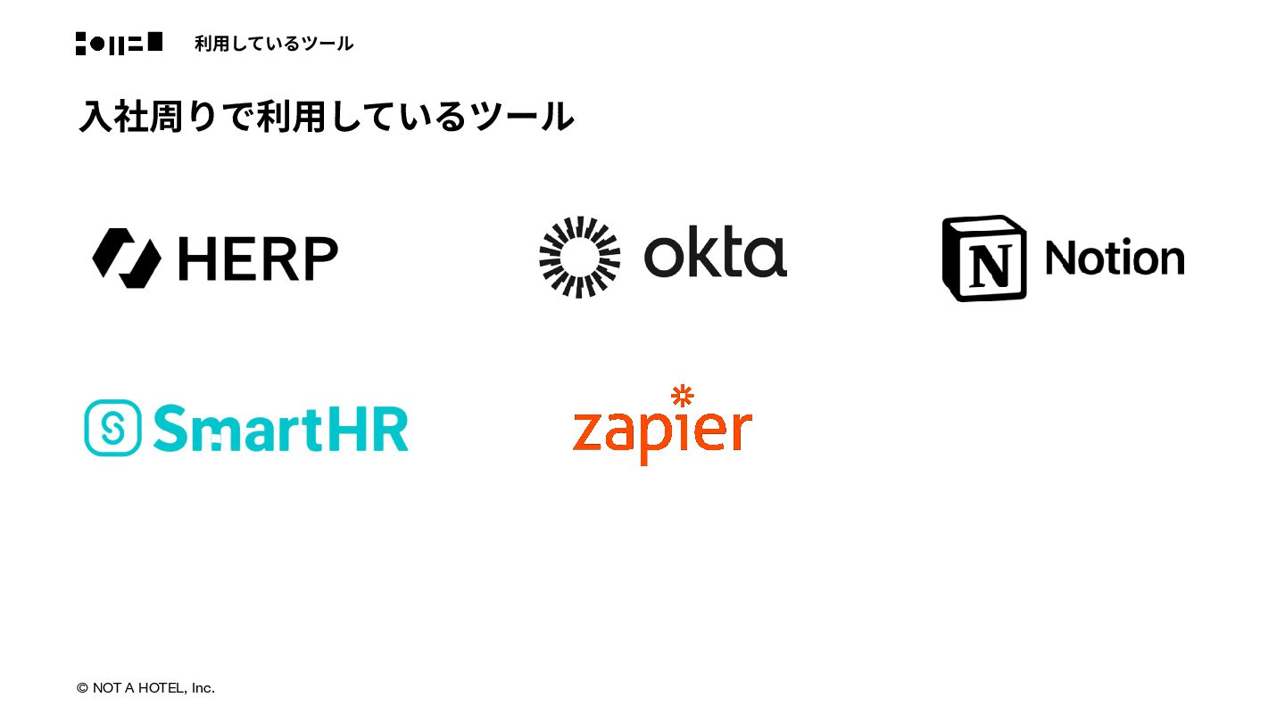 © NOT A HOTEL, Inc. 利⽤しているツール ⼊社周りで利⽤しているツール