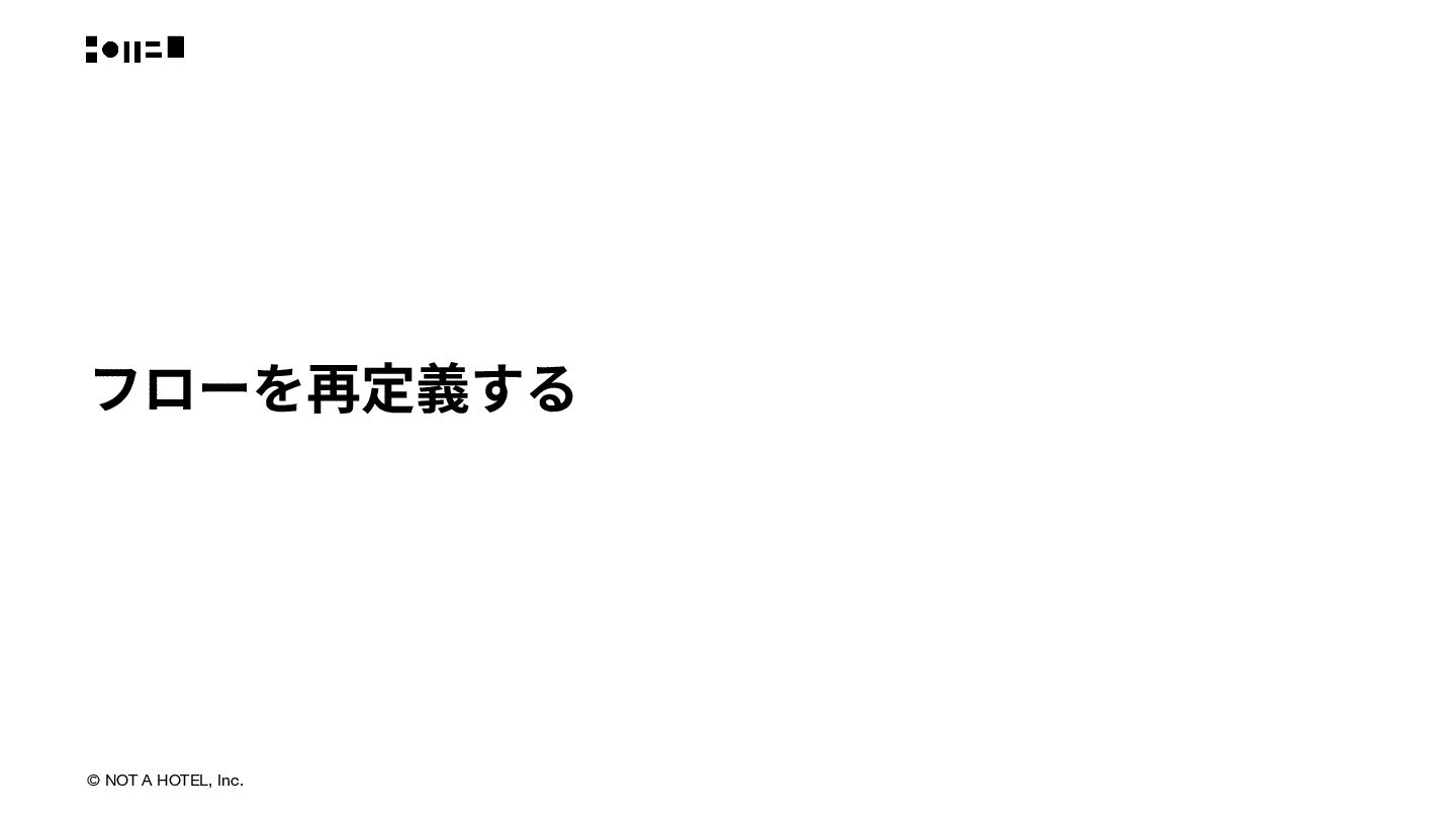© NOT A HOTEL, Inc. 今⽇、お話したいこと 今⽇のGoal • フローを再定義する時に、考え⽅、整理⽅法を知ってもらいたい •