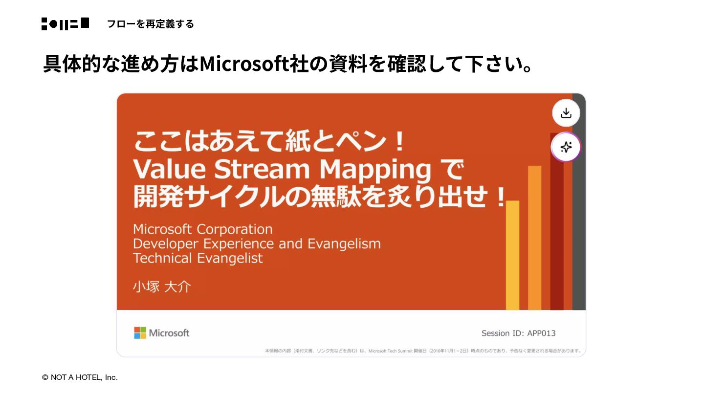 © NOT A HOTEL, Inc. フローを再定義する 具体的な進め⽅はMicrosoft社の資料を確認して下さい。