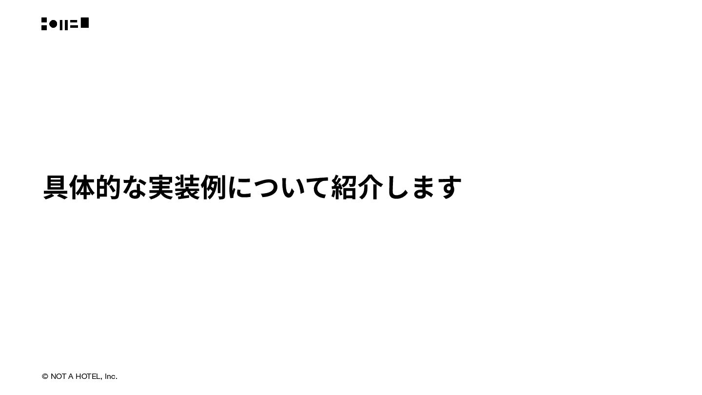 © NOT A HOTEL, Inc. 具体的な実装例について紹介します