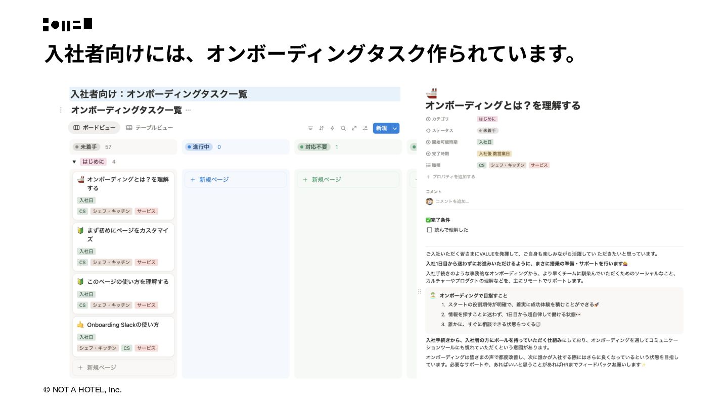 © NOT A HOTEL, Inc. ⼊社者向けには、オンボーディングタスク作られています。