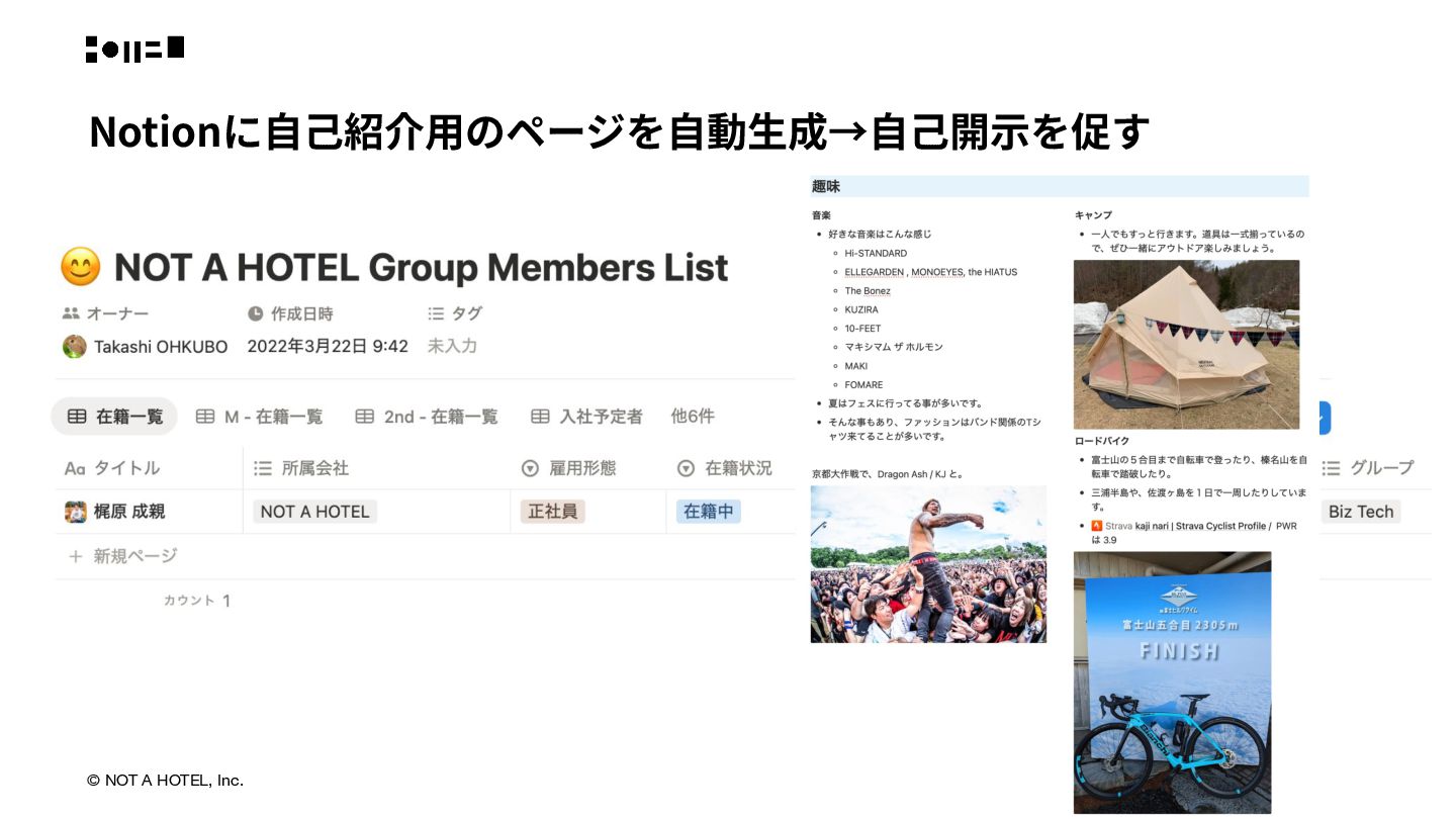© NOT A HOTEL, Inc. Notionに⾃⼰紹介⽤のページを⾃動⽣成→⾃⼰開⽰を促す