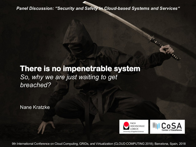 Although it might be hard to accept. By principle, attackers can establish footholds in our systems whenever they want (zero-day exploits). This presentation is some input for a panel discussion about "Security and Safety in Cloud-based Systems and Services" (9th International Conference on Cloud Computing, GRIDs, and Virtualization (CLOUD COMPUTING 2018) in Barcelona, Spain in February 2018).