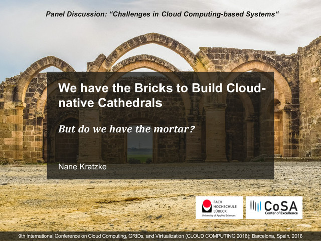 This is some input for a panel discussion about "Challenges of Cloud Computing-based Systems" at the 9th International Conference on Cloud Computing, GRIDs, and Virtualization (CLOUD COMPUTING 2018) in Barcelona, Spain in February 2018.