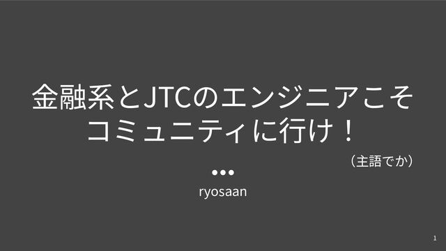 ⾦融系とJTCのエンジニアこそ コミュニティに⾏け! ryosaan 1 (主語でか)
