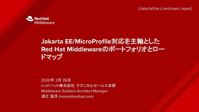 1. 2020年 2月 26日 レッドハット株式会社 テクニカルセールス本部 Middleware Solution Architect Manager 須江