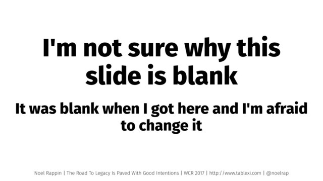 Legacy code. We’ve all dealt with it, we’ve all screamed at it. And we’ve all written it. A project becomes legacy when developers no longer have the context of old decisions. The transition to legacy status happens step by step, decision by decision. This talk will examine patterns that lead to legacy code, such as “personnel turnover”, “shifting priorities”, and “developer fads”. We’ll show how the pattern turns code into legacy and, more importantly, how it can be avoided or mitigated. At the end of the talk, you’ll be able to keep your project from sliding quickly into the legacy swamp.