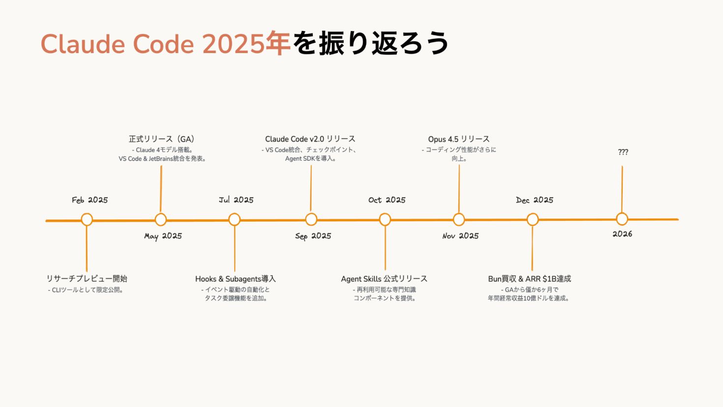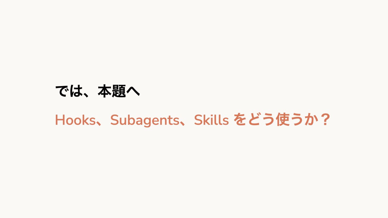 2025年にリリースされたClaude Codeを振り返り、Hooks、Subagents、Agent Skillsの使い分けを紹介します。