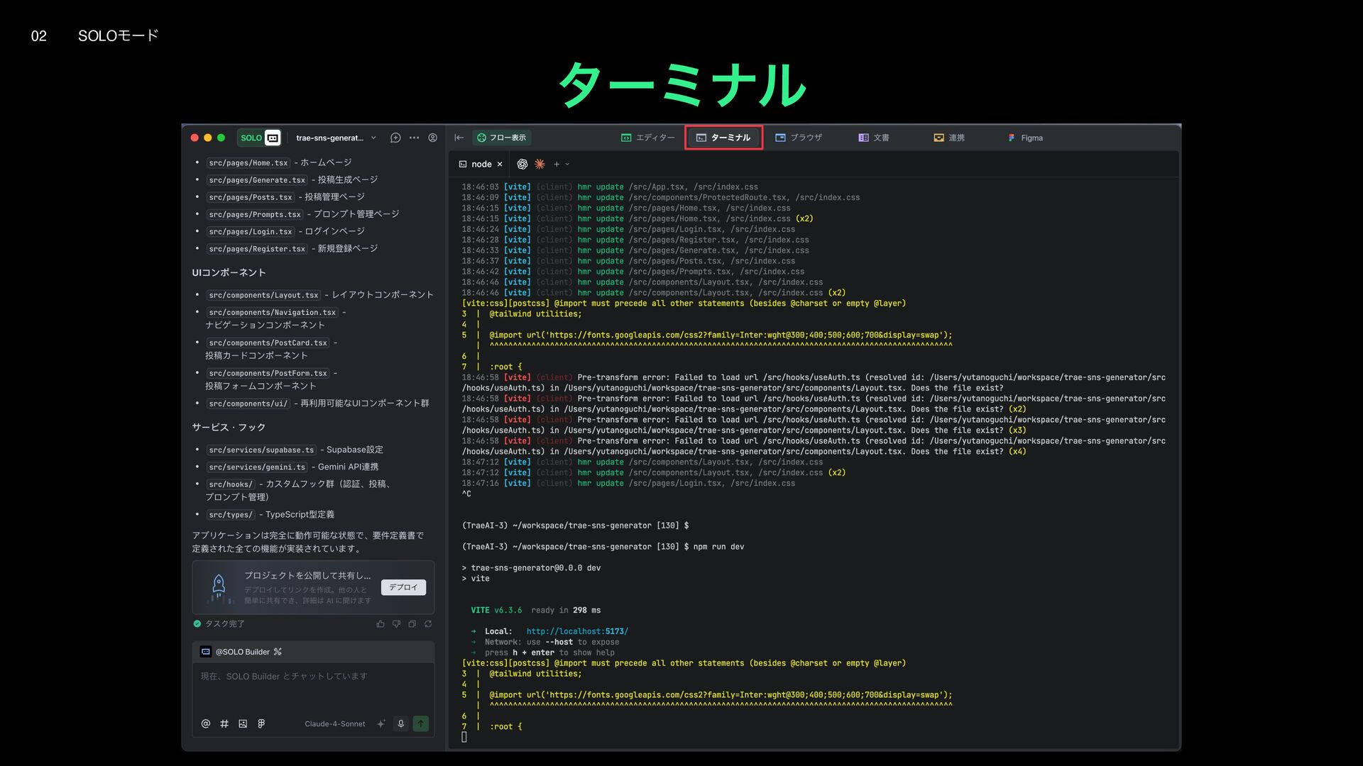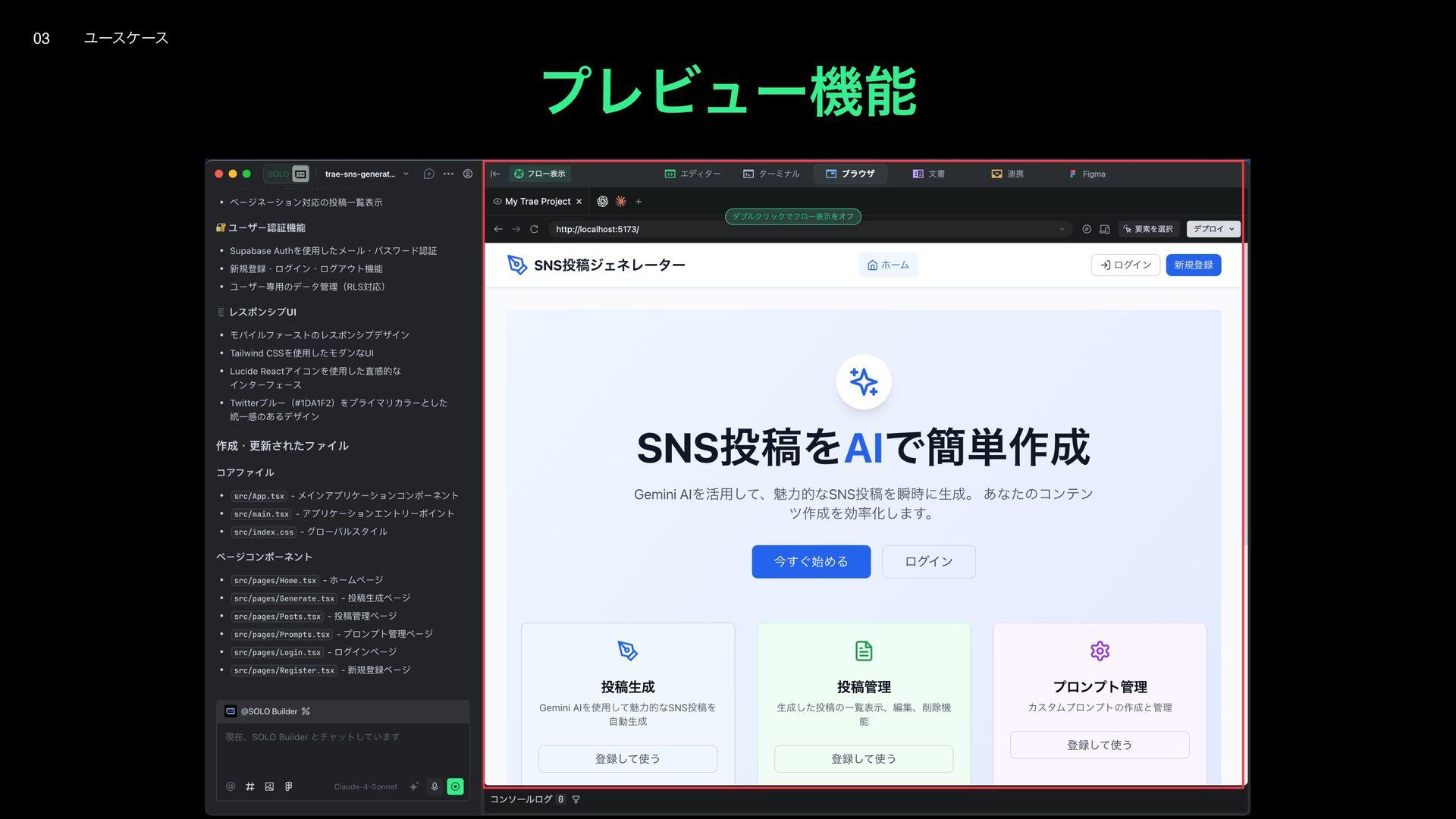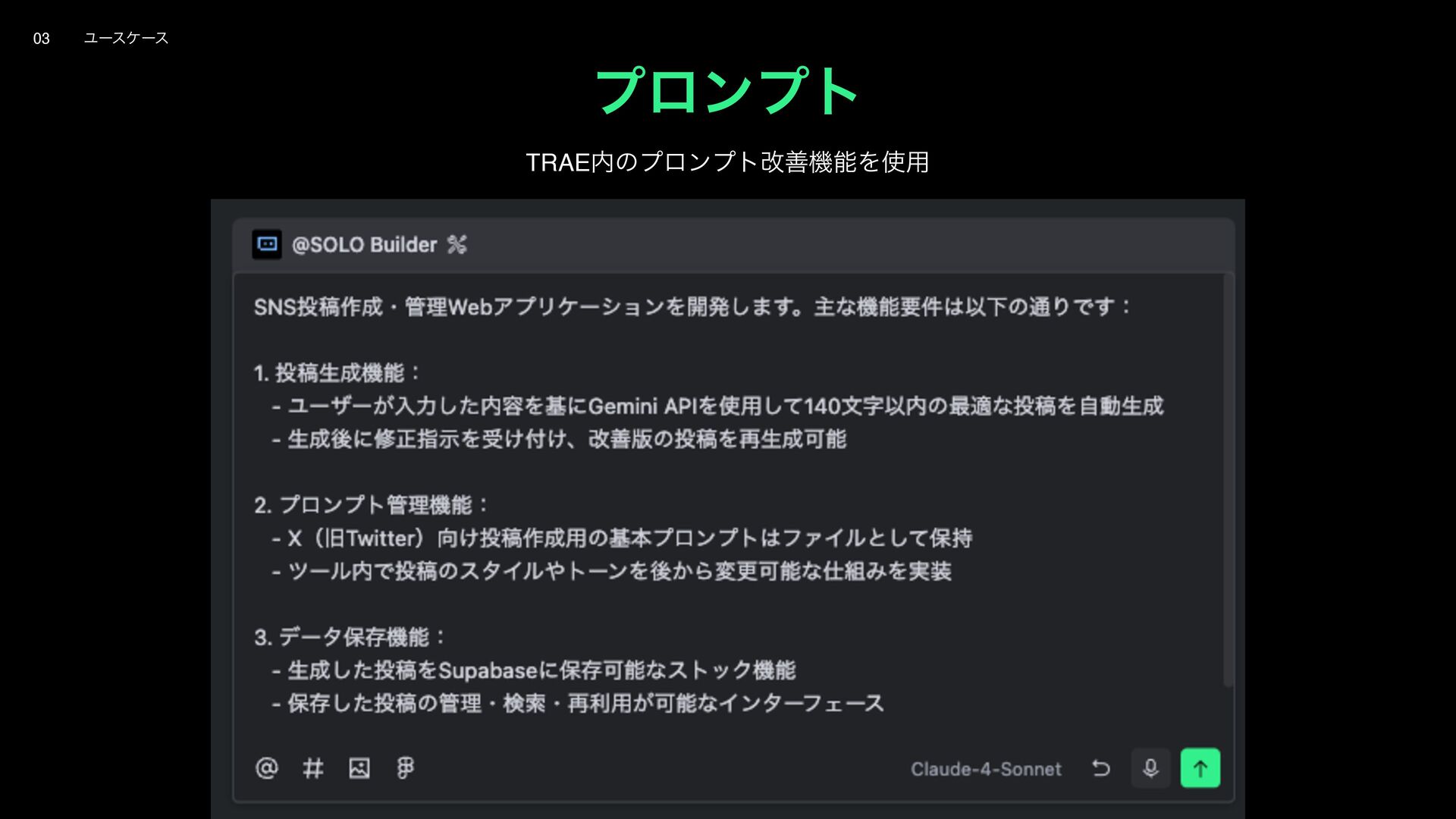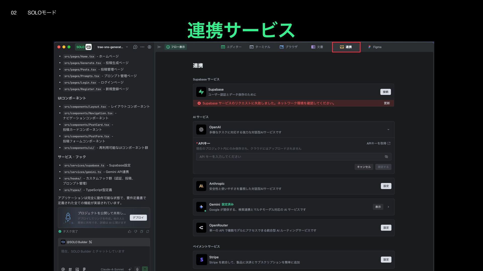 02 SOLOϞʔυ SOLEϞʔυ ཁ݅ཧղɺίʔυੜɺςετɺ݁ՌͷϓϨϏϡʔɺσϓϩΠϝϯτʹࢸΔ·Ͱ ։ൃϓϩηεશମΛAI͕ࣗతʹܭըɾ࣮ߦͰ͖Δɻ