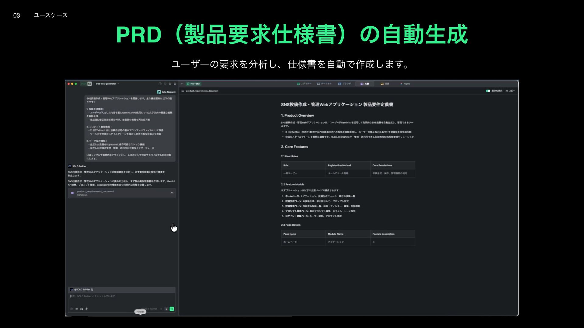 03 Ϣʔεέʔε PRDʢཁٻ༷ॻʣͷࣗಈੜ ϢʔβʔͷཁٻΛੳ͠ɺ༷ॻΛࣗಈͰ࡞͠·͢ɻ