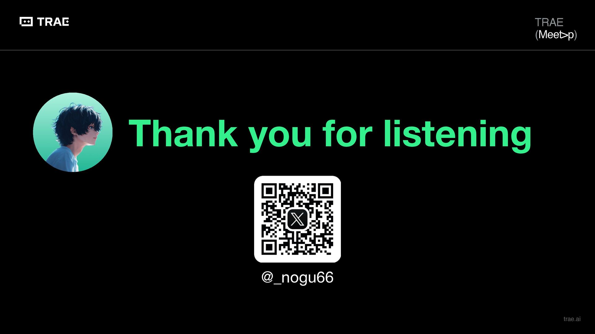 trae.ai TRAE (Meet>p) Thank you for listening @_nogu66